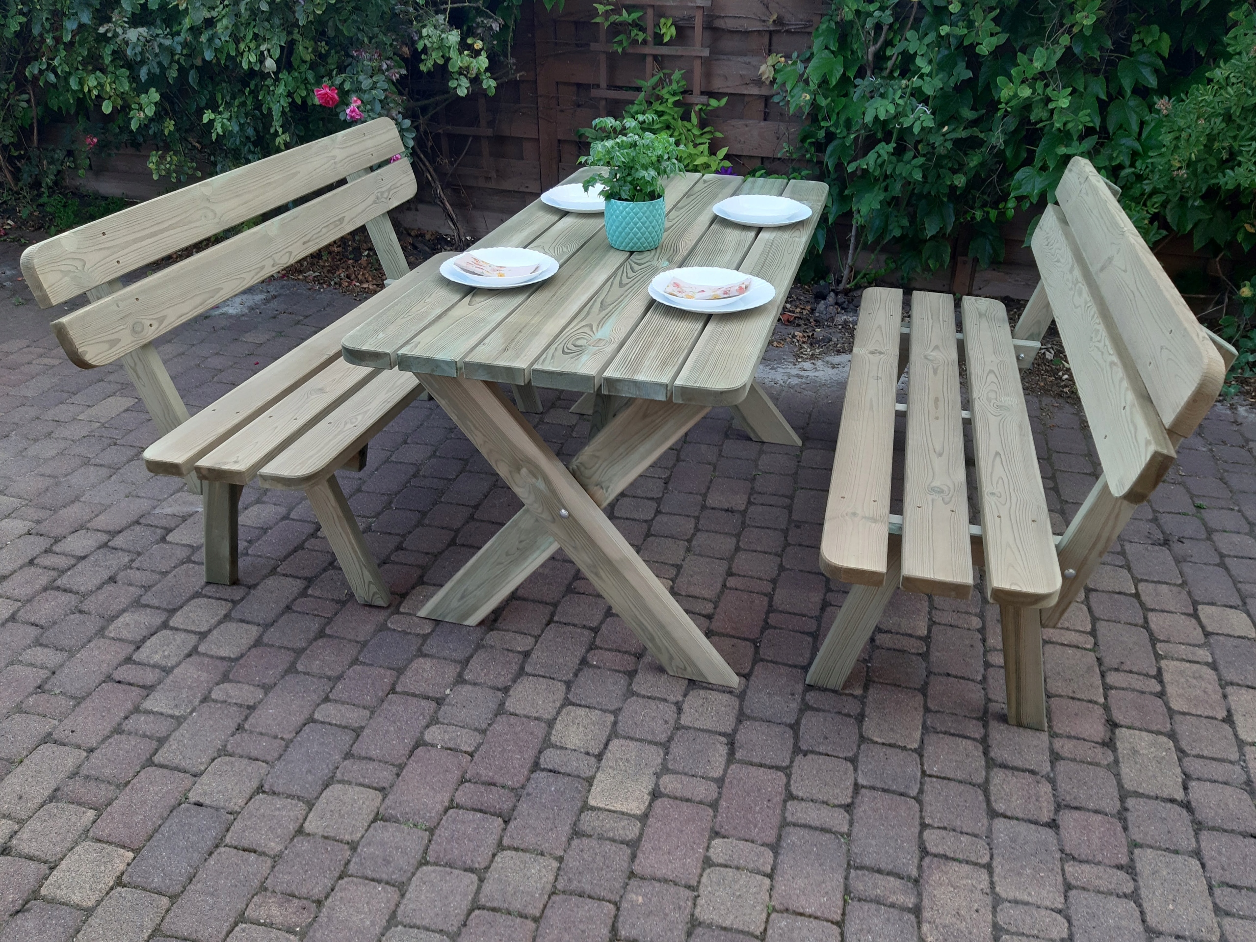 - 2 x скамейки размерами 150 x 55 x 45/87 см (Д x Ш x высота сиденья/ общая высота)