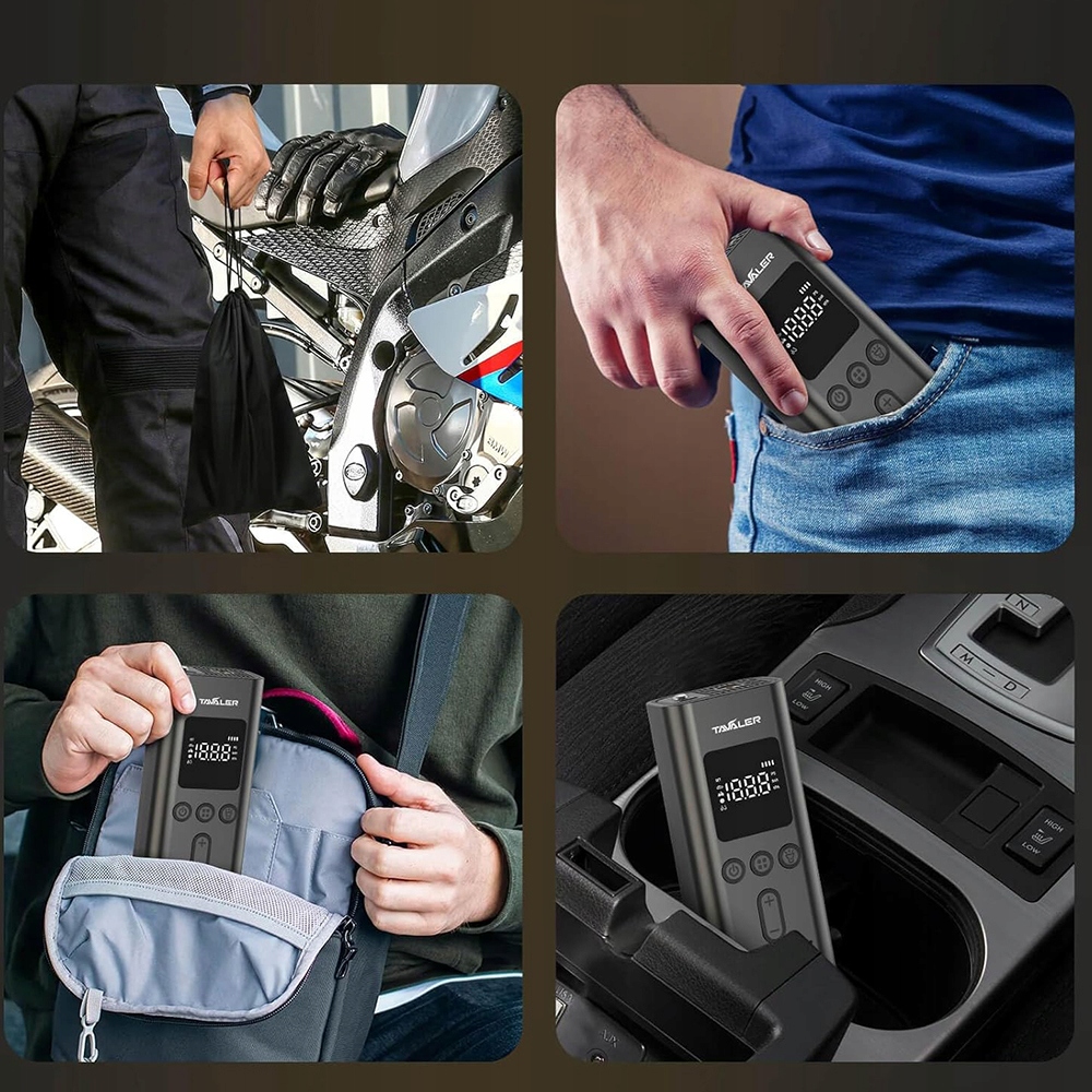 Насос Тавалера имеет встроенную батарею в 4000 мАч, которая после полного заряда может оставаться готовой до 6 месяцев! Он может накачивать автомобильные шины (от 0 до 2,5 бар) и обеспечивать воздух для всей сборки велосипеда! 🔌🔋