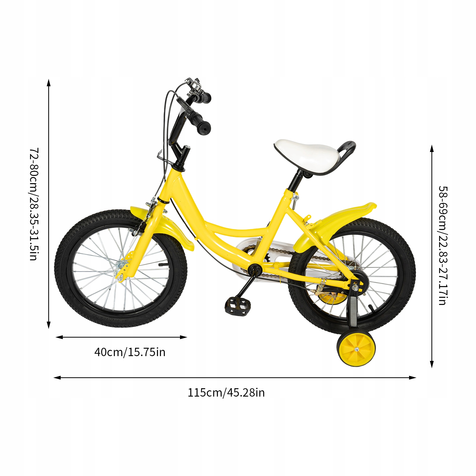 16 -дюймовый детский велосипед, 5-8 лет со вспомогательными колесами - желтый