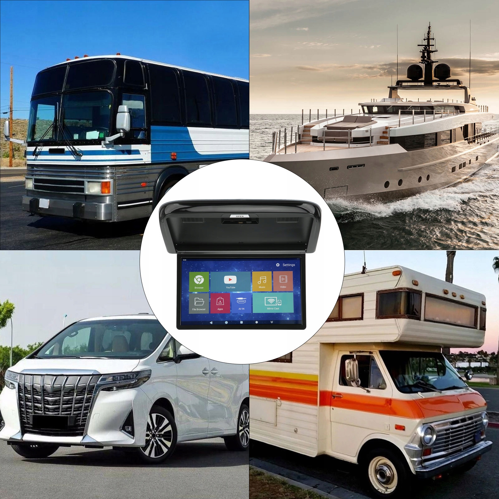 Функция: 1. Multifunctional: вы можете смотреть живое телевидение в Интернете, смотреть фильмы из приложения, слушать музыку, просматривать веб -сайты, поддерживать соединения между системами Android и iOS, сглажим экраном и четким качеством изображения. Встроенный -В Wi -Fi поддерживает установку приложения. Функция Bluetooth: поддержка подключения Bluetooth, удобная для передачи данных, а также видео и аудио, обработка мобильного телефона и игрока на крыше для одновременного просмотра или просмотра, поддержка Google, живая трансляция онлайн, беспроводной пульт дистанционного управления и другие приложения. 1080p HD: этот монитор установки на крыше поддерживает разрешение 1080p, может плавно воспроизводить видео в полном 1080p HD и отображает яркие цвета с отличительными деталями, благодаря вам и вашим пассажирам может наслаждаться ваш любимый контент. Хорошее качество звука: встроенные динамики или внешние усилители мощности, чтобы насладиться различными звуками, независимое регулирование высокого и низкого напряжения, отличные характеристики динамики, благодаря которой лучше качество звука. Функция освещения окружающей среды: освещение окружающей среды с 7 цветами, вы можете управлять освещением окружающей среды в соответствии с личными предпочтениями, а постоянно контролируемая и трансформируемая среда, увеличивает атмосферу развлечений в автомобиле. Максимальный угол открытия 160 °: Потолочный мультимедийный игрок может быть открыт под углом 160 °, чтобы предоставить пассажирам максимальное положение просмотра и обеспечить его полезность в транспортном средстве. Разверните мультимедийные параметры: благодаря USB -входу, карте памяти и мультимедийному интерфейсу высокого разрешения, показанного в этом мониторе, вы можете насладиться игрой на новом уровне благодаря встроенному порту мультимедийного интерфейса с высоким уровнем. 16-дюймовый игрок на крыше с экраном