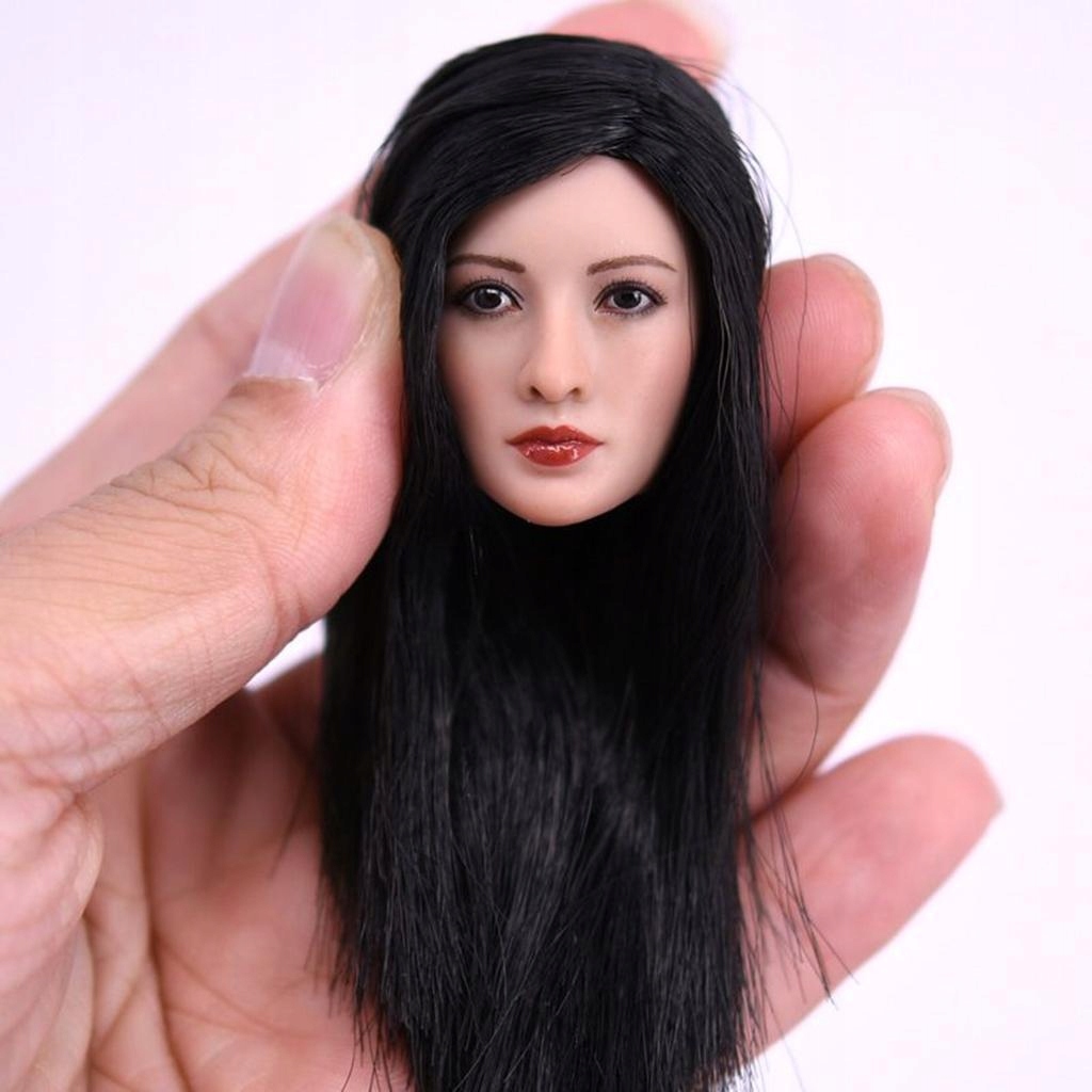 1/6 Жіноча голова Скульптура Шарм Чорне Довге Волосся