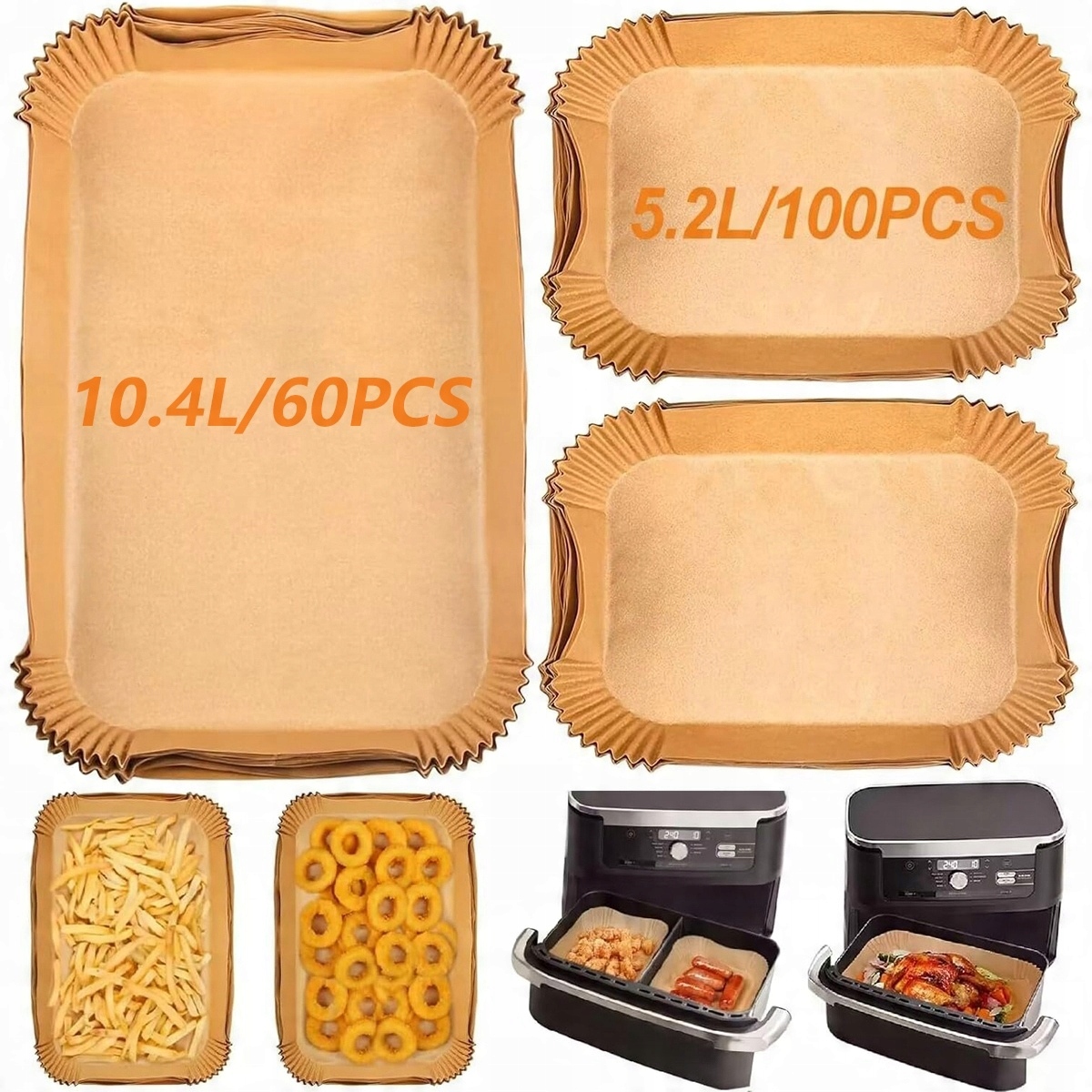 Эти вставки предназначены для выдвижных ящиков фритюрниц Ninja Flex Drawer AF500EU и AF500EUCP Flex Dual Air Fryer. В набор вставок входят 60 больших бумажных вкладышей и 100 маленьких бумажных вкладышей.