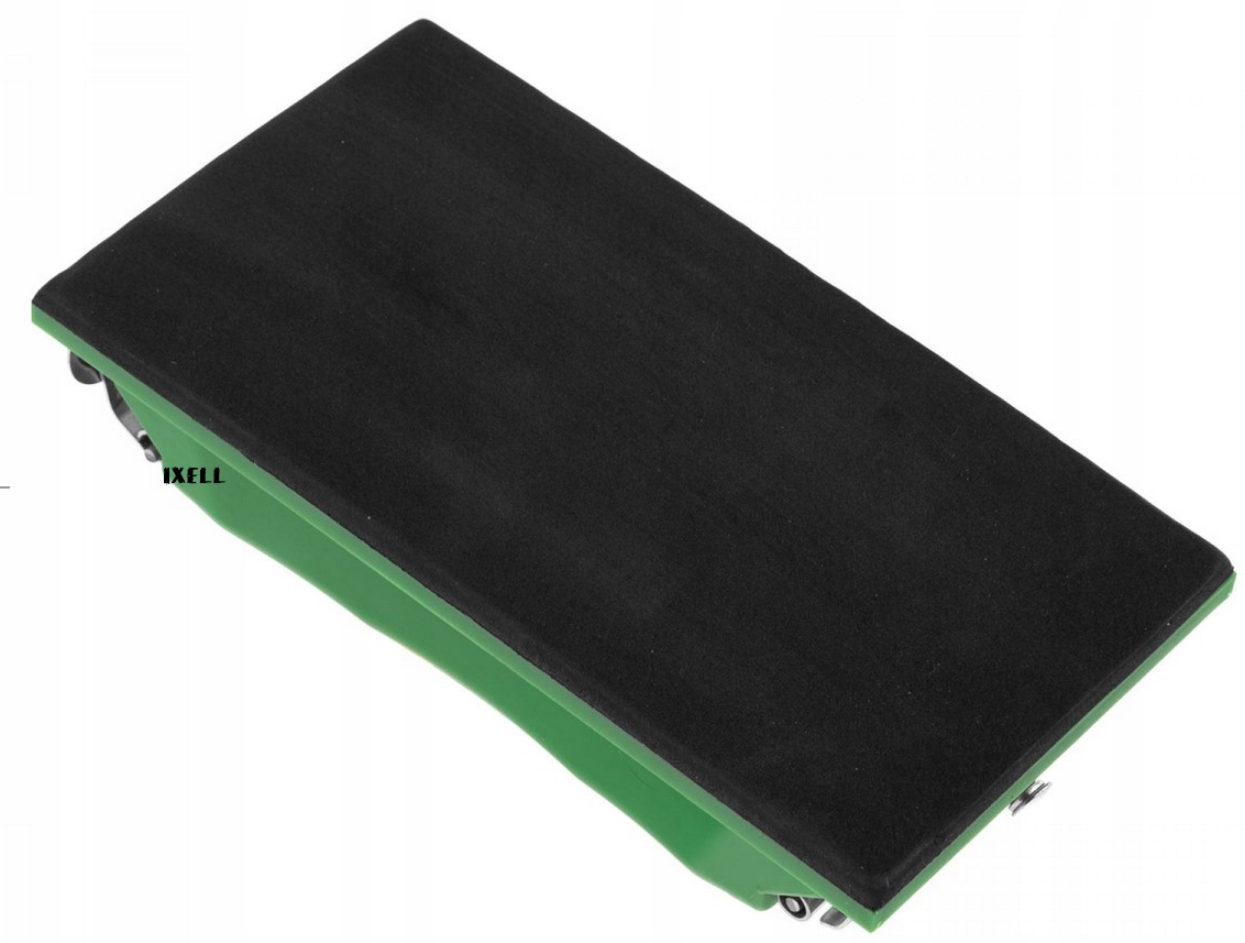 Рабочая пластина покрыта слоем негорючей резины, которая вместе с прижимами предотвращает перемещение наждачной бумаги относительно рабочей пластины, а также повышает гибкость при обработке полукруглых, вогнутых поверхностей.