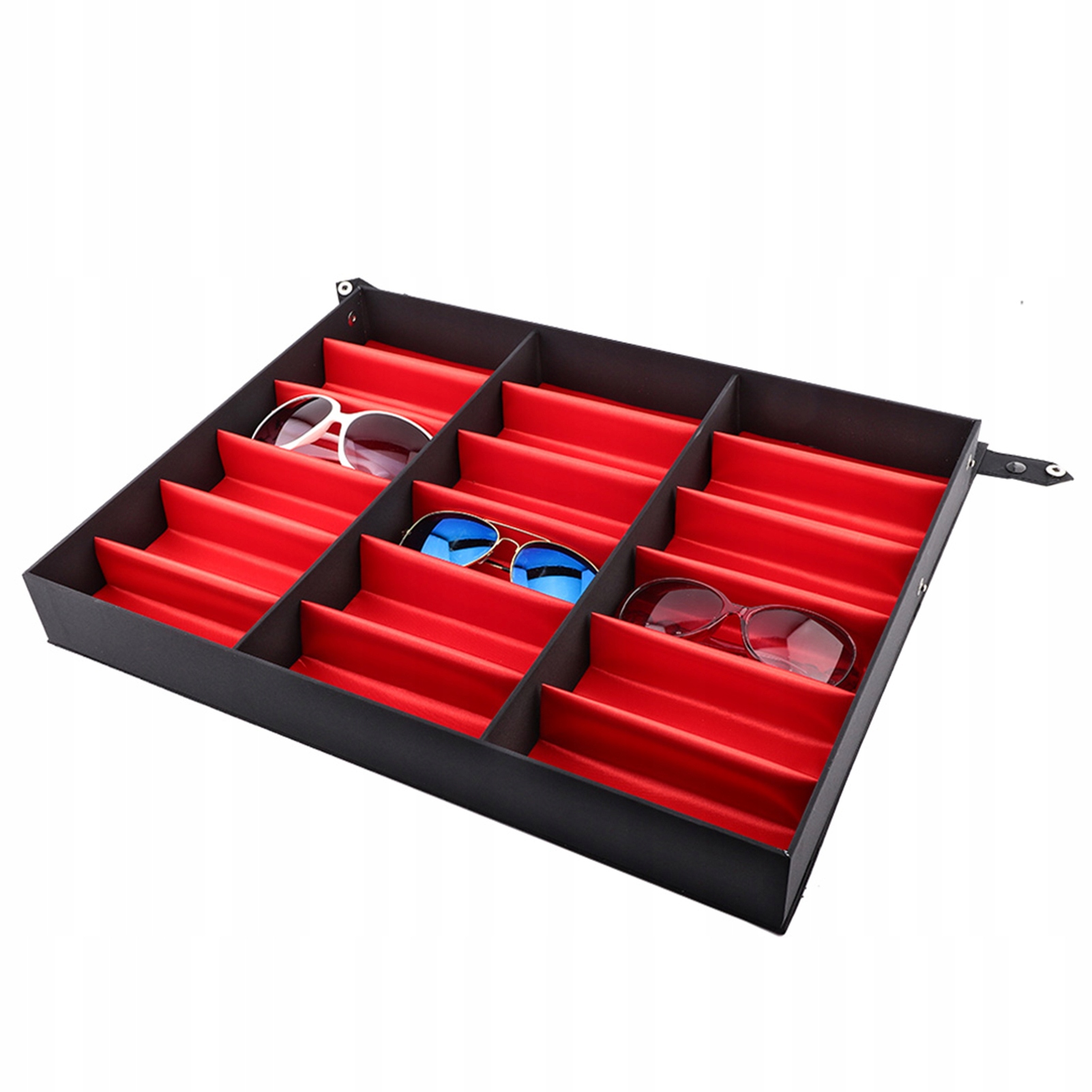 3. Рассчитанная крышка с металлическими снимками, вы можете закрыть его, чтобы защитить очки или превратиться в выставочную подставку.