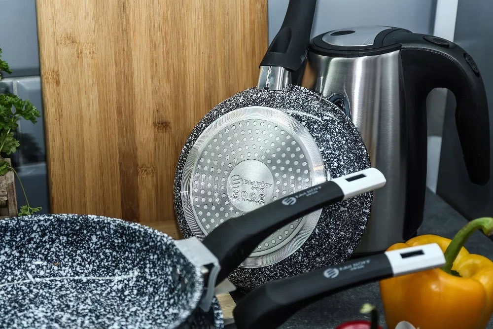 ✅Покрыт высококачественным гранитным антиадгезионным покрытием, обладающим повышенной твердостью и долговечностью (стойкость к истиранию и высоким температурам).