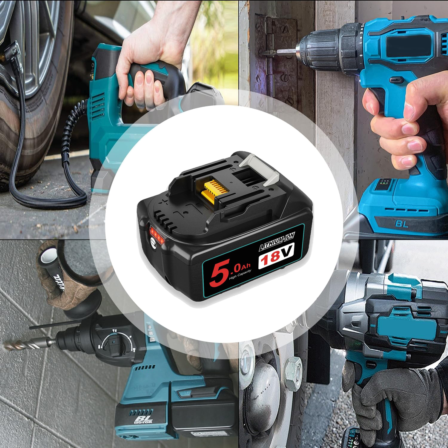 🔋 🔋 🔋 🔋 🔋 makita 18 V < /B Батарея> -Battery Тип: литий-ион. Напряжение: 18 В. Вместимость: 5000 мАч, заменяет макита 18 против. Батарея из ячейки 18650 идеально совместима с инструментом. Он предотвращает перегрузку, перегрев, перегрузку и короткие цирки без эффекта памяти, продлевает срок службы батареи и обеспечивает безопасную зарядку и использование. , BL1870B, 194205-3, 194230-4, LXT400 и т. Д., В соответствии с инструментами для Makita 18 V.