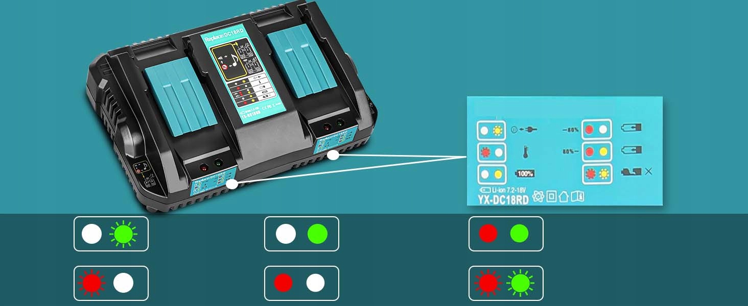 🎁🎁【Характеристики зарядного устройства】Ввод: 1 00~ 240В | Выход: 14,4 В ~ 18 В | Зарядный ток: 6 А | Зарядка сменного литий-ионного аккумулятора Makita 14,4–18 В