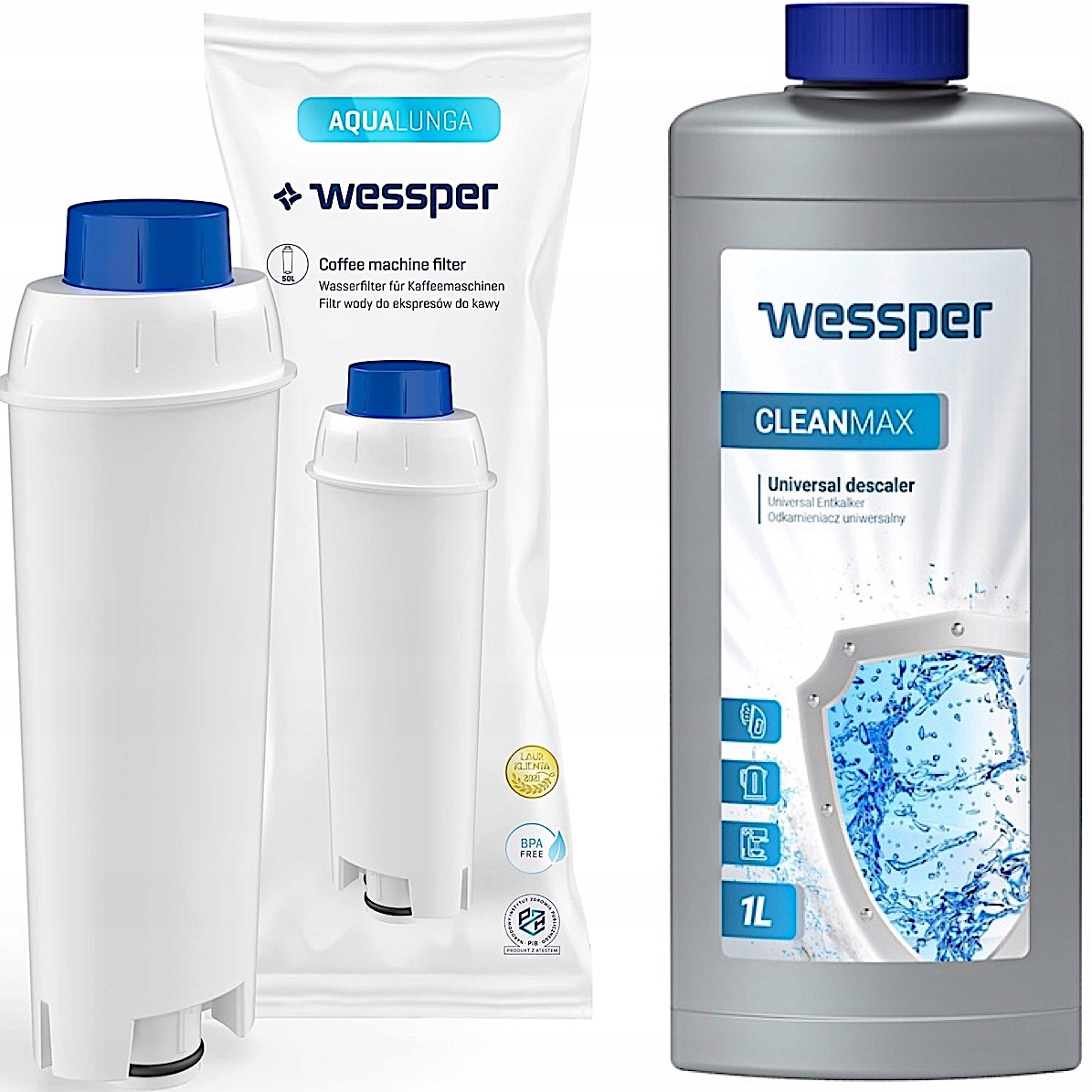 1x фільтр Wessper AquaLunga для кавомашини DELONGHI + ПОТУЖНИЙ ЗАСІБ ДЕД НАКИПУ 1000 мл