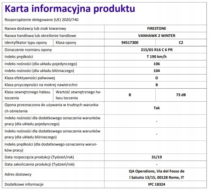 Оплачивая «1x ШИНА 215/65R16C FIRESTONE VANHAWK 2 2022 СТРАХОВКА», вы можете быть уверены, что данный товар из каталога «Зима» будет доставлен из Польши и проверен на целостность. В цене товара, указанной на сайте, учтена доставка из Польши. Внимание!!! Товары для Евросоюза, согласно законодательству стран Евросоюза, могут отличаться упаковкой или наполнением.