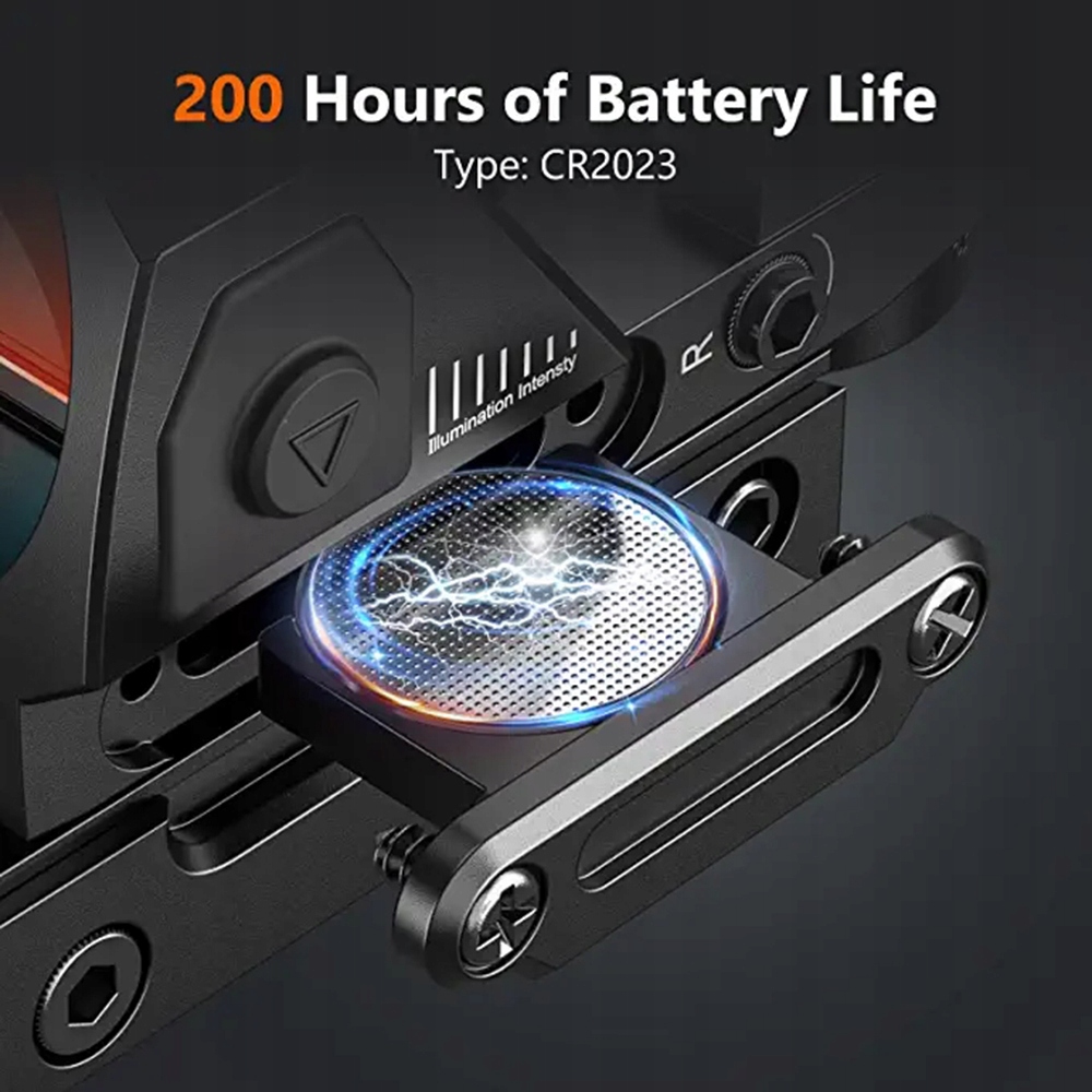 ----- Длительный срок службы батареи: коллиматорная оптика с низким энергопотреблением обеспечивает более 200 часов автономной работы. Функция автоматического отключения питания через два часа означает, что вам не придется беспокоиться о том, что вы забудете его выключить.