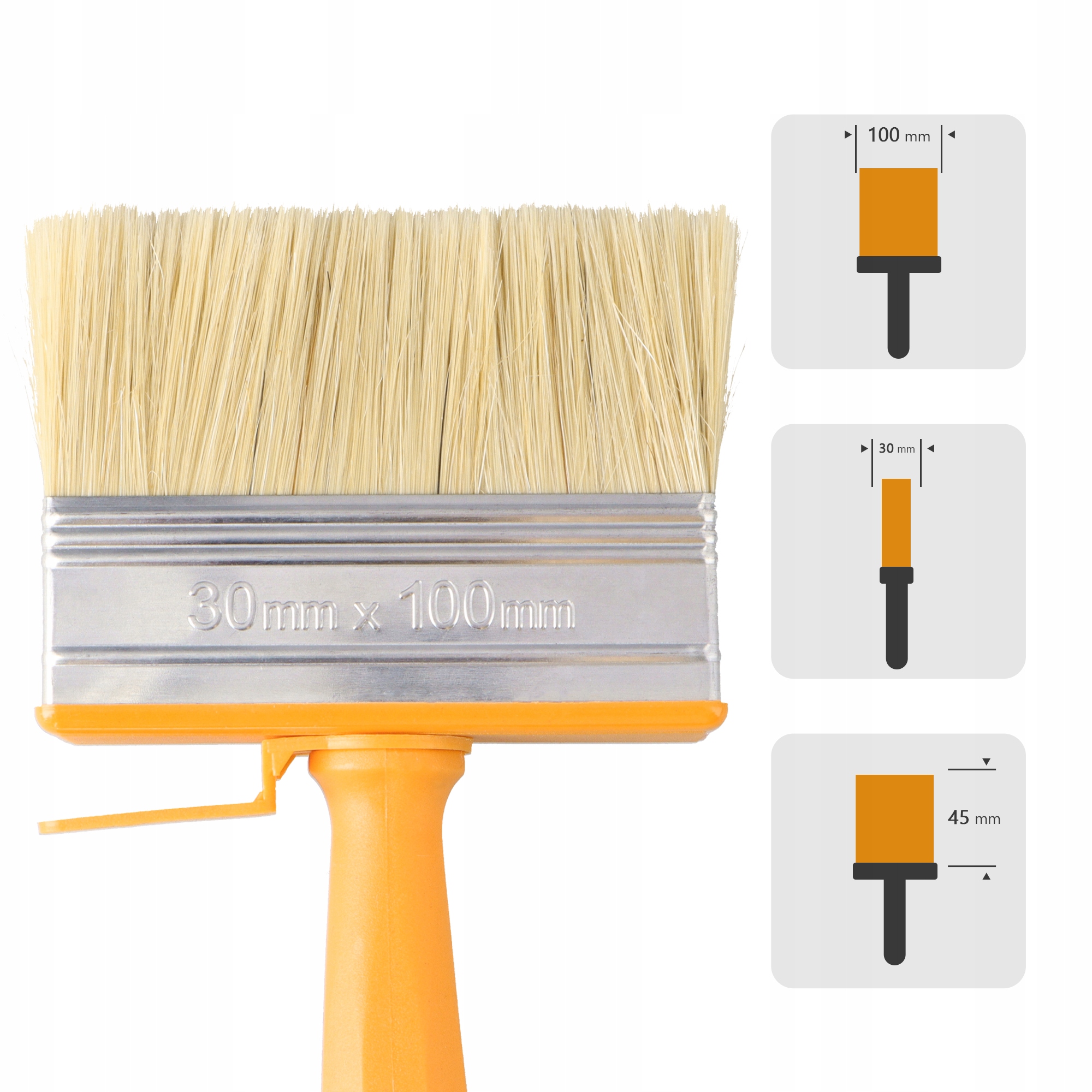 щетка Tapeciak была оборудована деревянной, хорошо -листной ручкой . Металлическая крышка хорошо держит щетину, защищая их от выпадения.