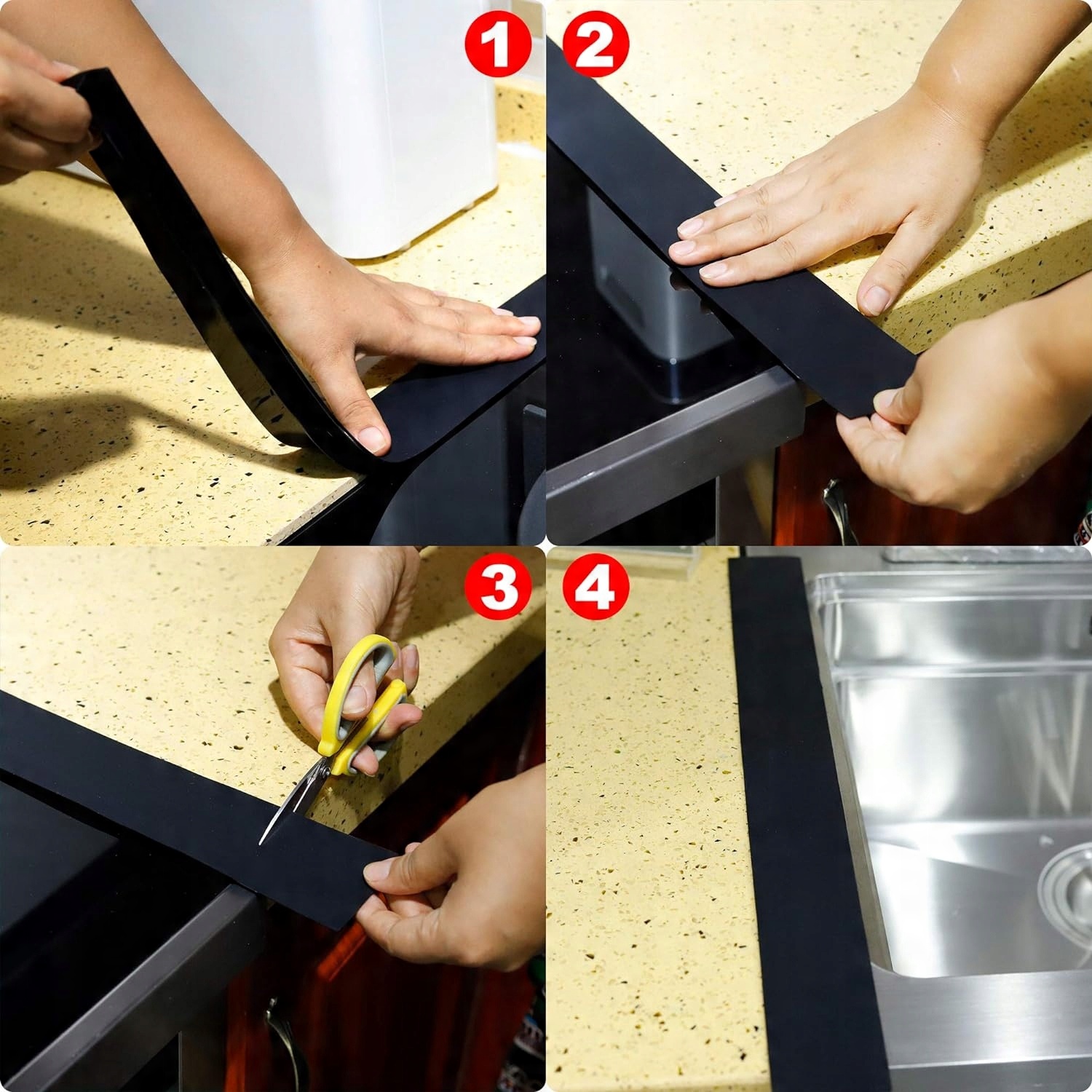 Откройте для себя идеальное решение, которое обеспечивает чистоту и эстетику вашей кухни благодаря нашим щитам из тканевой полосы наполнителя. Специально предназначенные для заполнения пространства между столешницей и стеной, эти покрытия эффективно защищают от проникновения грязи, остатков пищи или жидкостей до твердых мест. Идеально подходит для каждой кухни, они гарантируют простоту чистоты и добавляют элегантность благодаря современному дизайну.