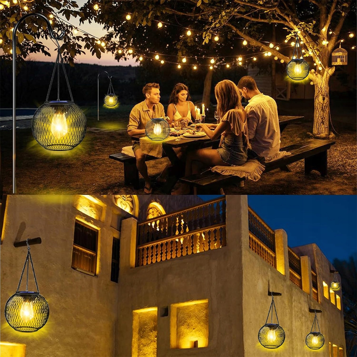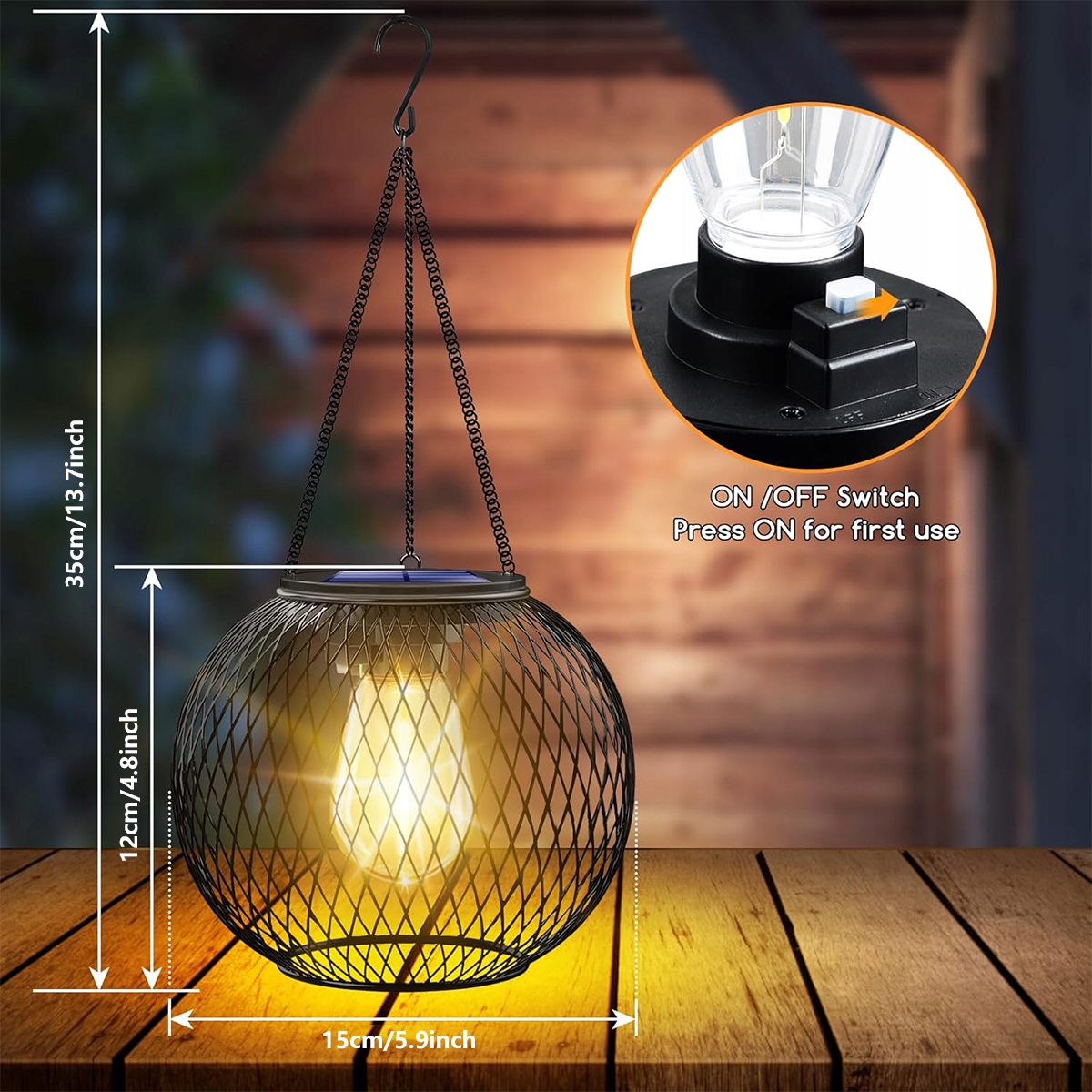 ✅ Не -трансрационный вид: Большие солнечные лампы для сада имеют уникальный дизайн со встроенными пластиковыми светодиодными лампами и металлической рамой. Солнечные лампы для наружного использования состоят из высококачественных крючков и цепей с прочной металлической сеткой, которая совпадает, создавая круглую лампу с открытыми работами (диаметр около 15 см) и дает вашему саду теплые цвета. Солнечные фонарики являются идеальным дополнением к оформлению сада