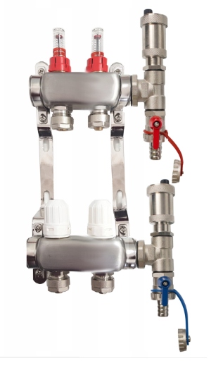 Дистрибьюторы направляют коэффициент нагрева в отдельные петли нагревания под полосой. Наше предложение включает в себя наборы, посвященные как на нагревании нижней части, так и для установок с радиаторами - с балками из латуни или нержавеющей стали. Необходимым оборудованием для нагрева нижнего полоса является расходомеры, которые используются для сбалансировки гидравлической установки, то есть выравнивание потоков на отдельных петлях. Ротаметры высочайшего качества, используемые в коллекторах, позволяют читать поток, а также его правила и полное закрытие данного цикла. Другим элементом коллектора, необходимого для плоского нагрева, являются термостатические клапаны на обратной балке - с ручками для ручной работы и возможностью установки термоэлектрической головки со стандартным соединением M30x1.5 для использования системы управления электронным нагреванием.