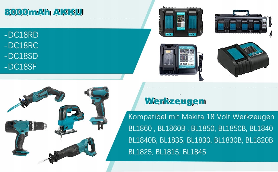 - Makita 18 В : BL1815, BL1830, BL1840, BL1845, BL1860