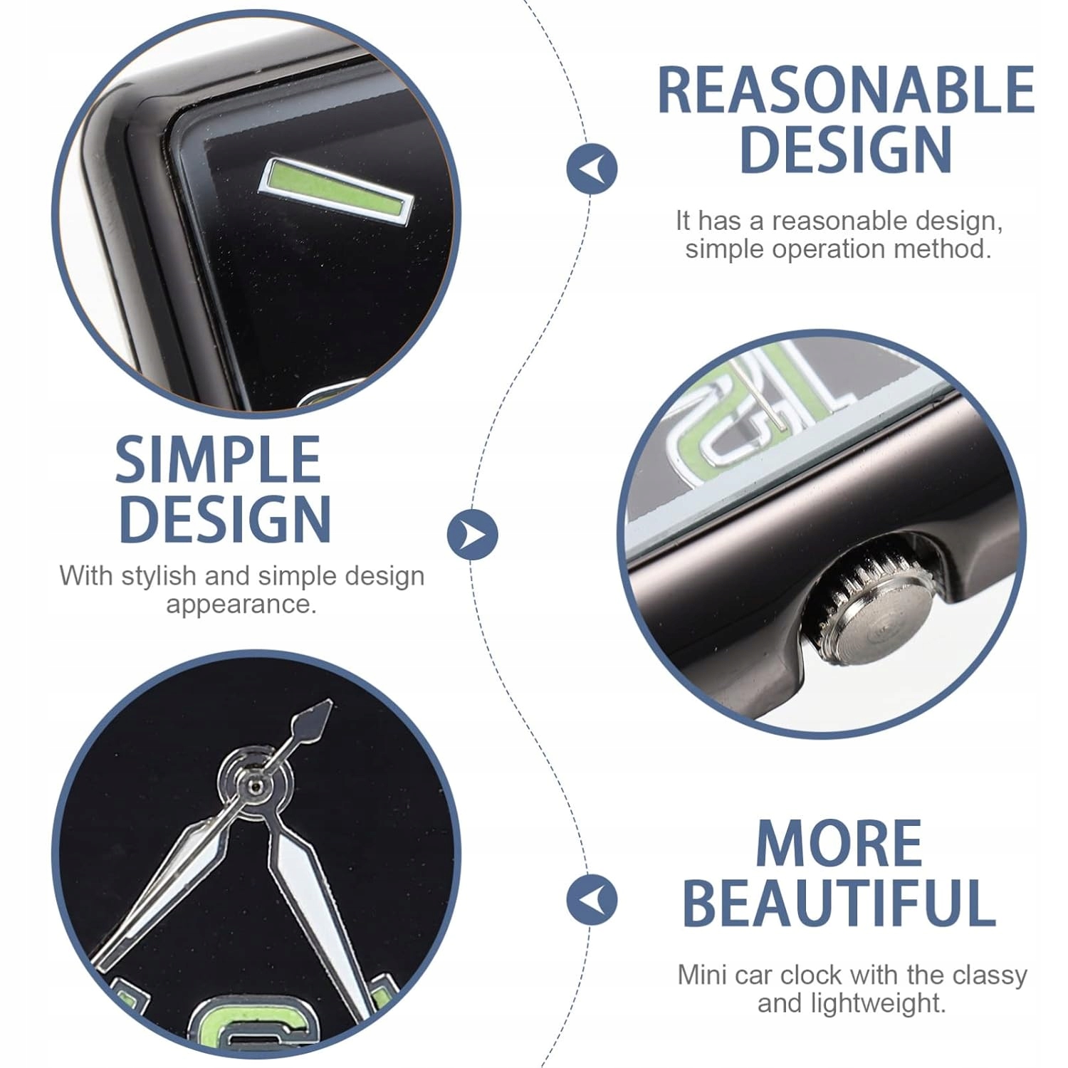 Декор автомобильных часов на приборной панели со стильным и простым видом может совпадать с различным автомобилем в машине. Мини -автомобильные часы с мини -часами с элегантным и легким внешним видом, который не покрывает поле зрения. Оборудование приборной панели состоит из прочного материала с идеальной текстурой и тонкой конструкцией. Аналоговые часы для автомобиля имеют широкий спектр применений и могут использоваться в доме офиса офиса и других мест. Цифровой автомобиль сигнализирует цифровые ЖК -автомобильные часы с идеальной производительностью и простой внешний вид высокой точной и практической эффективности.
