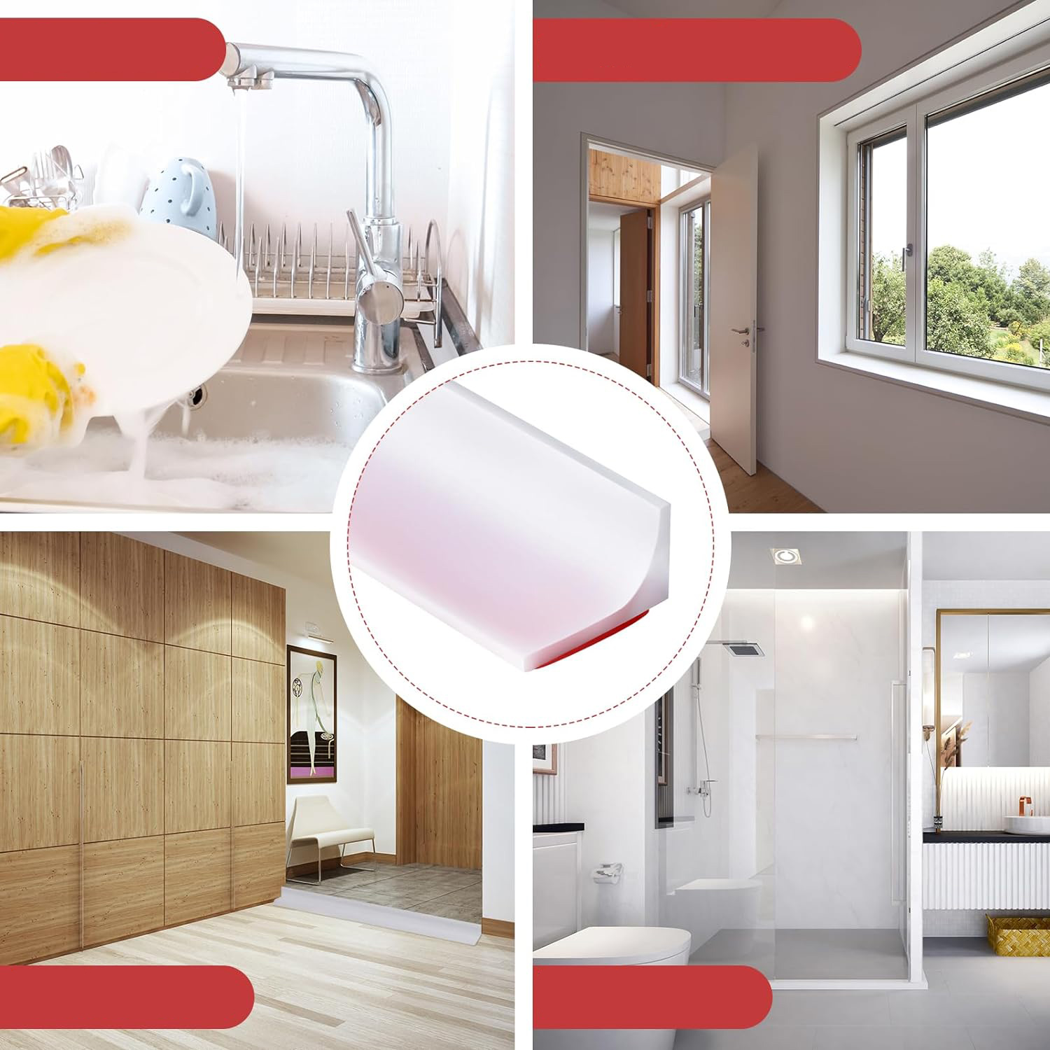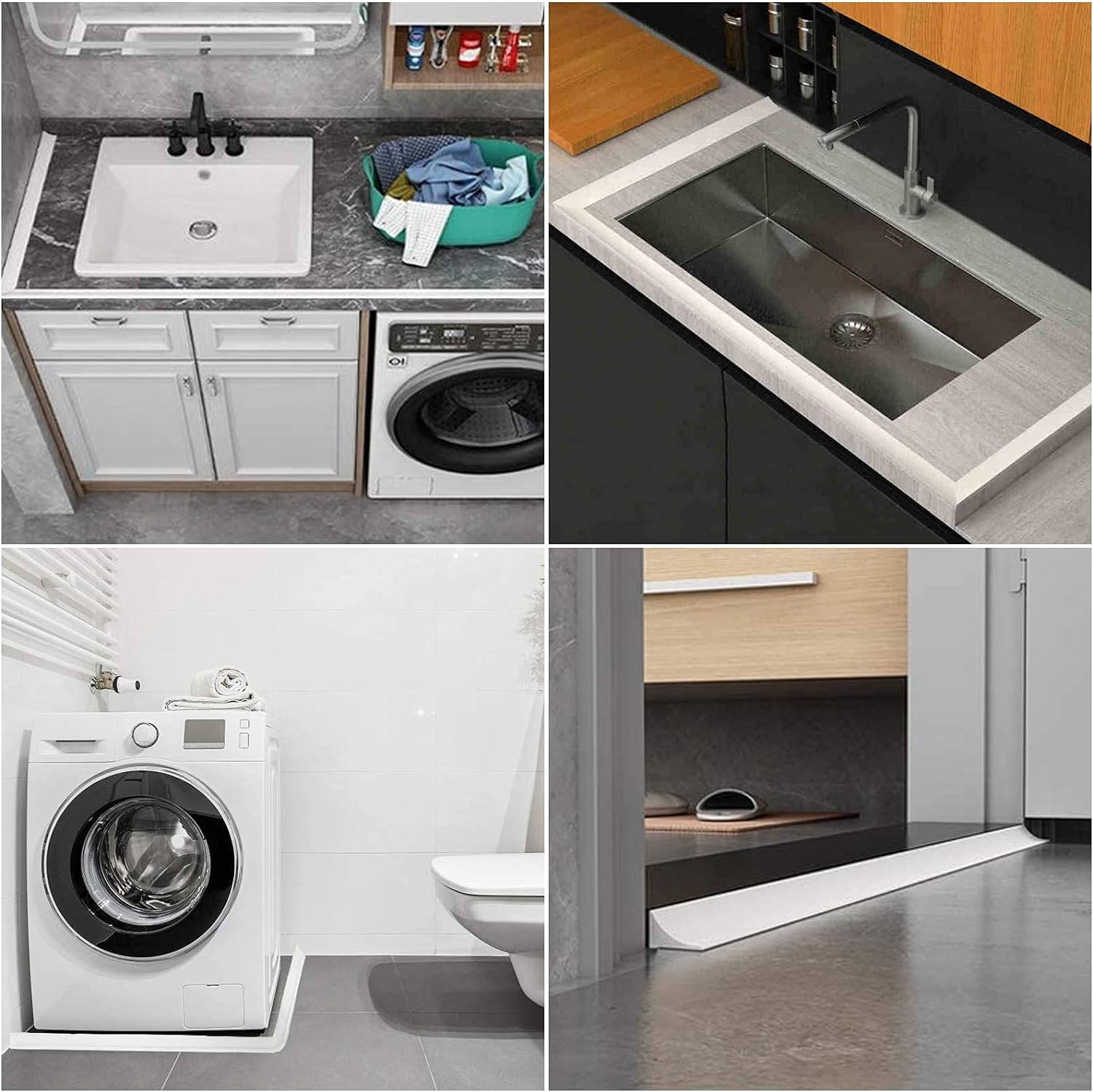 💧💧💧【 широкое использование】 его можно использовать на полах в душе, бассейнах, кухонных раковинах, у двери ванных комнат, на краях ванны, вокруг стиральных машин или туалетов, создавая водонепроницаемый барьера, эффективно блокируя поток воды, обеспечивая разделение сухих и влажных зон и влажных зон. Защита дома от влаги! В углах мы рекомендуем разрезать под углом 45 градусов и соединяться под углом 90 градусов, чтобы соединение было более долговечным и прочным.