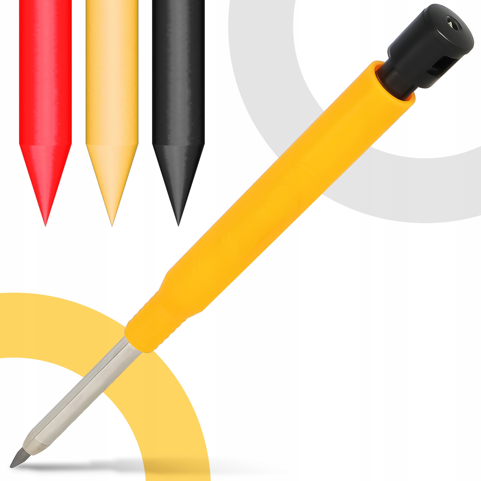 Карандаш столярный 2,8 мм 2 шт. с стержнями (черный 12 шт., желтый 6 шт., красный 6 шт.)