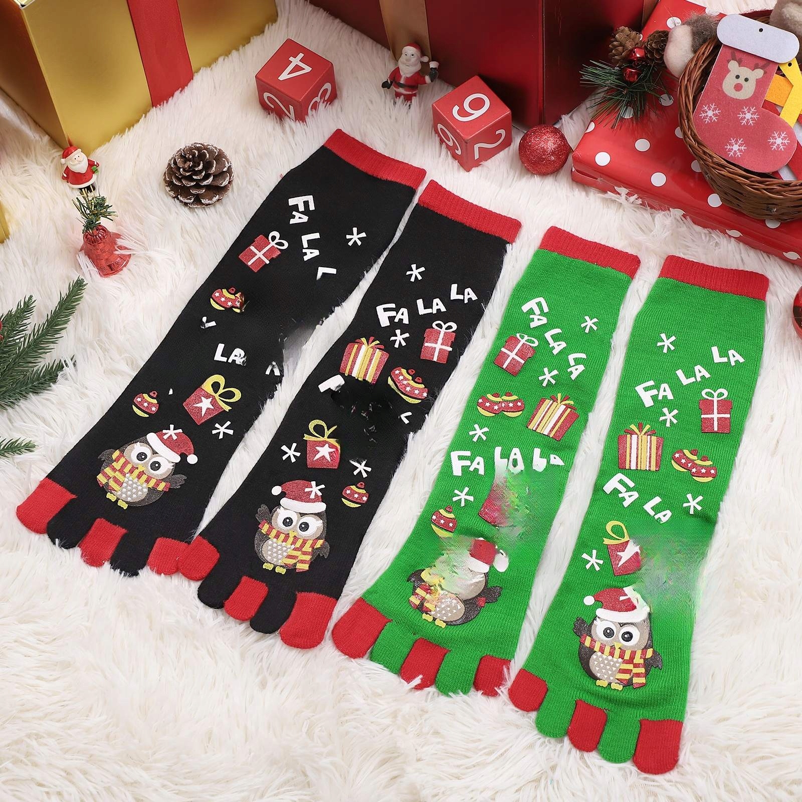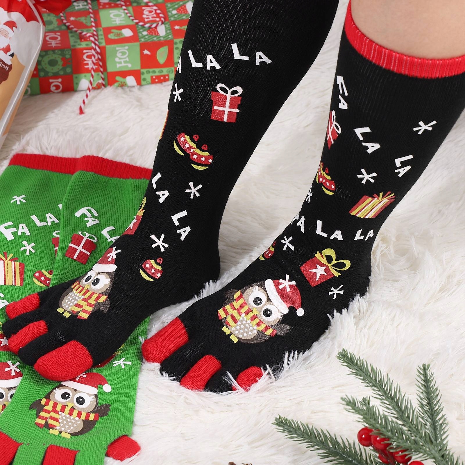 ✅Восхитительные и теплые рождественские носки с пятью пальцами идеально подходят для того, чтобы сопровождать вас во время курортного сезона. Эргономичный каблук обеспечивает надежную фиксацию стопы и обуви, а конструкция с пятью пальцами уменьшает сжатие между пальцами и улучшает кровообращение.