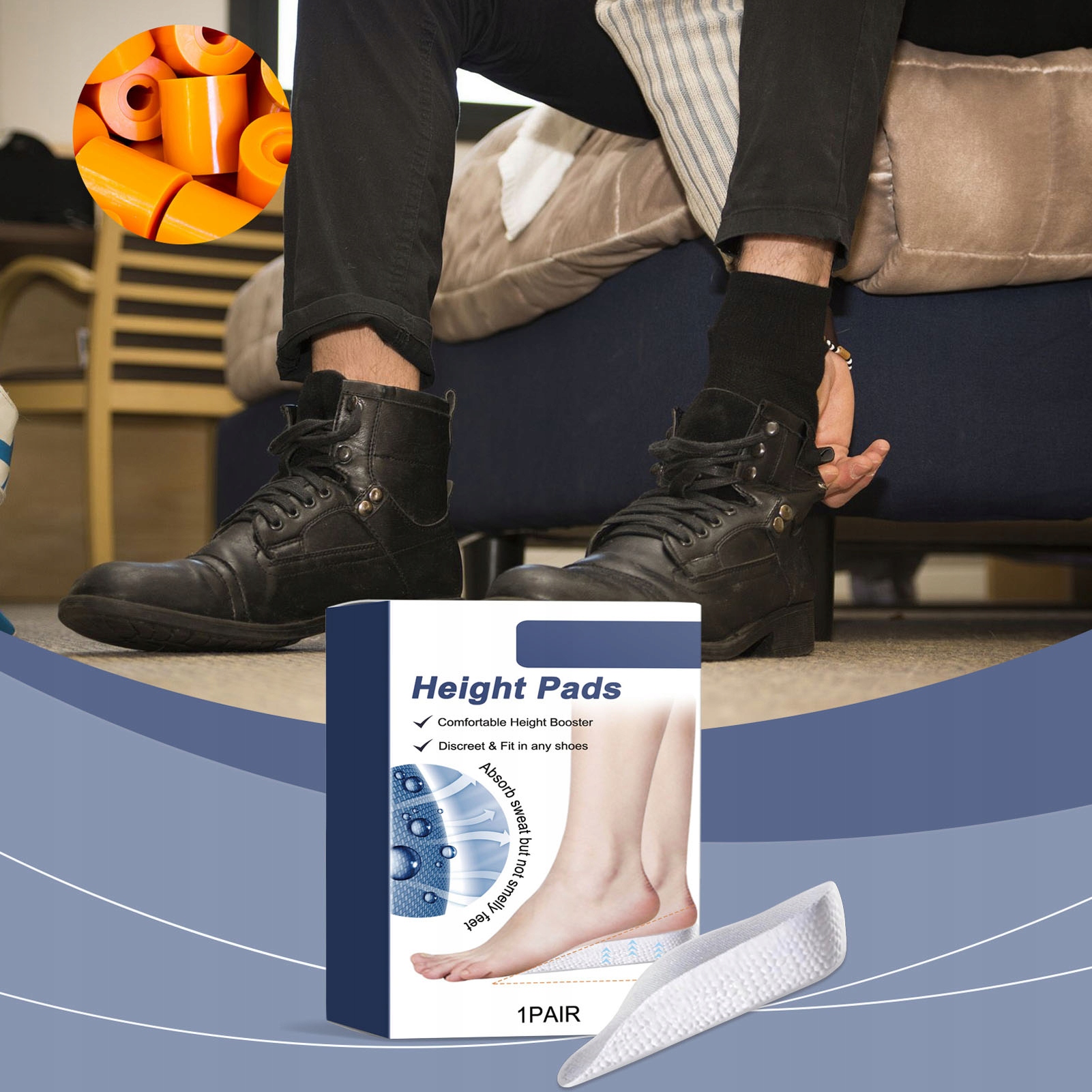 2. [Universal Fit] Наши обувные подушки для роста совместимы с различными типами обуви, что облегчает их сочетание различных костюмов для каждого события, дня или ночи.
