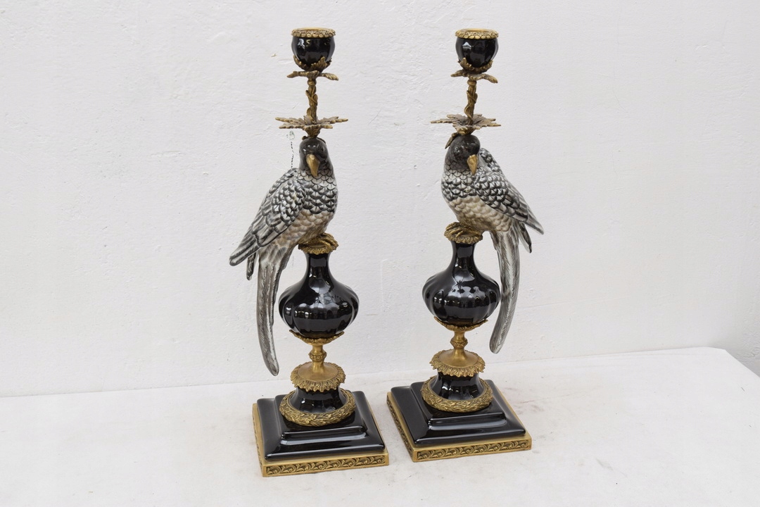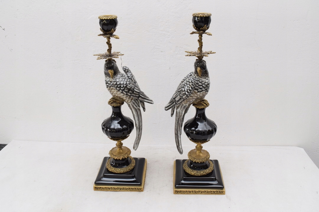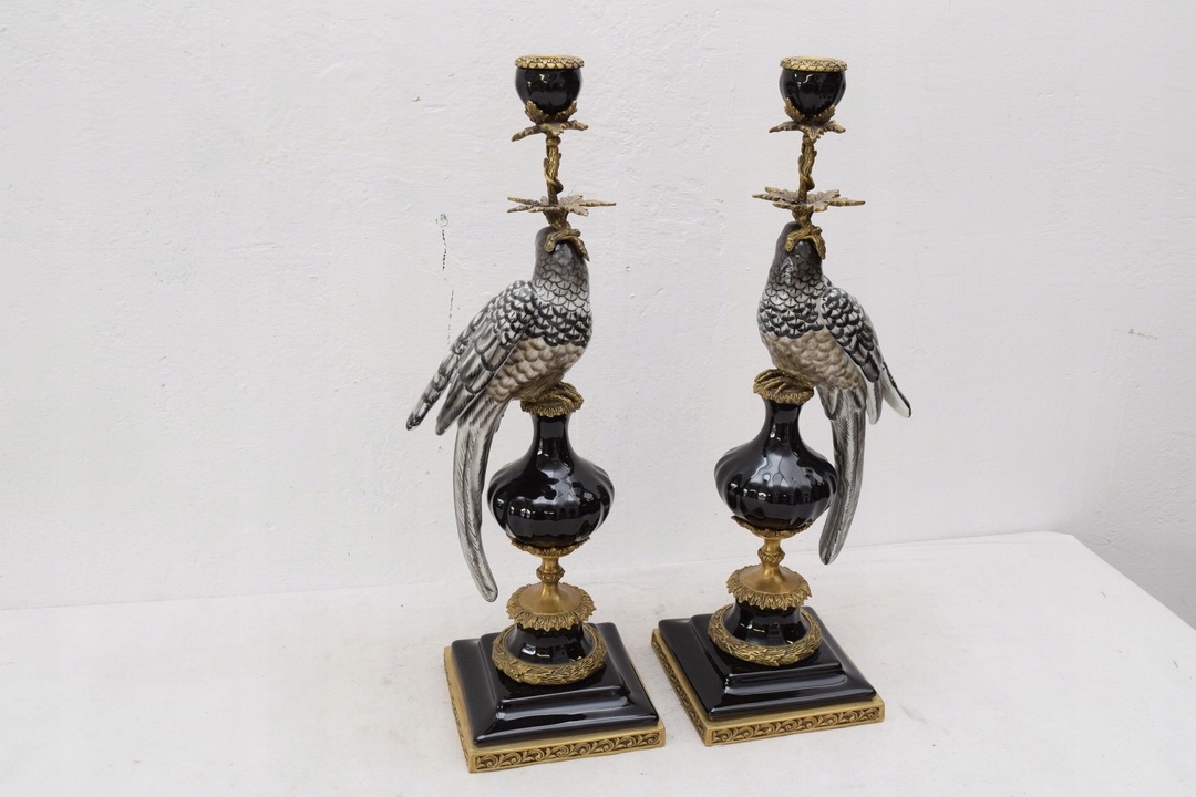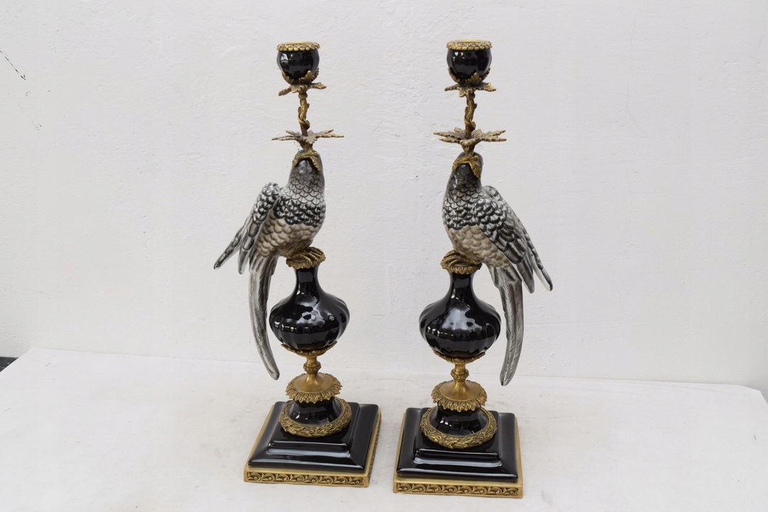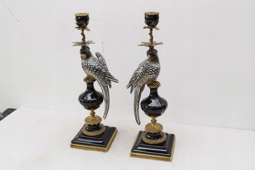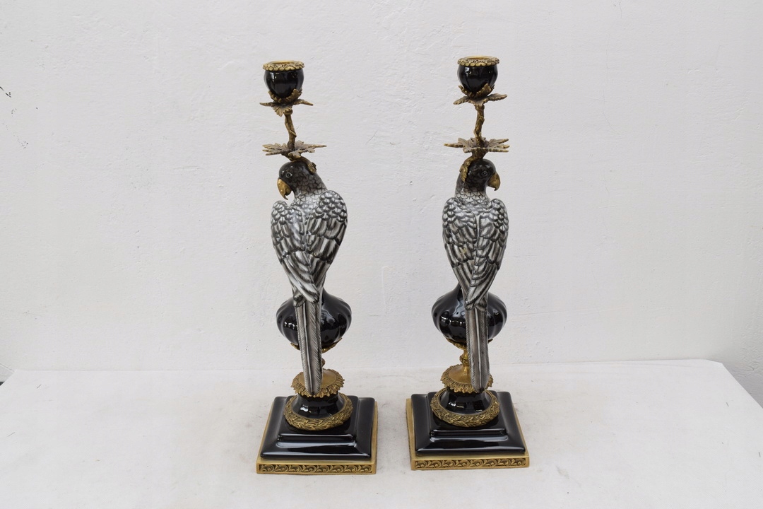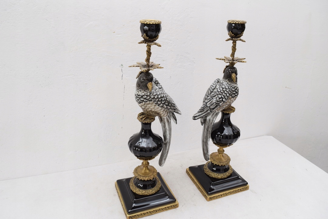 Здравствуйте, сегодня хочу предложить Вам красивые подсвечники в виде попугая из фарфора, а подсвечник и украшения выполнены из бронзы.
