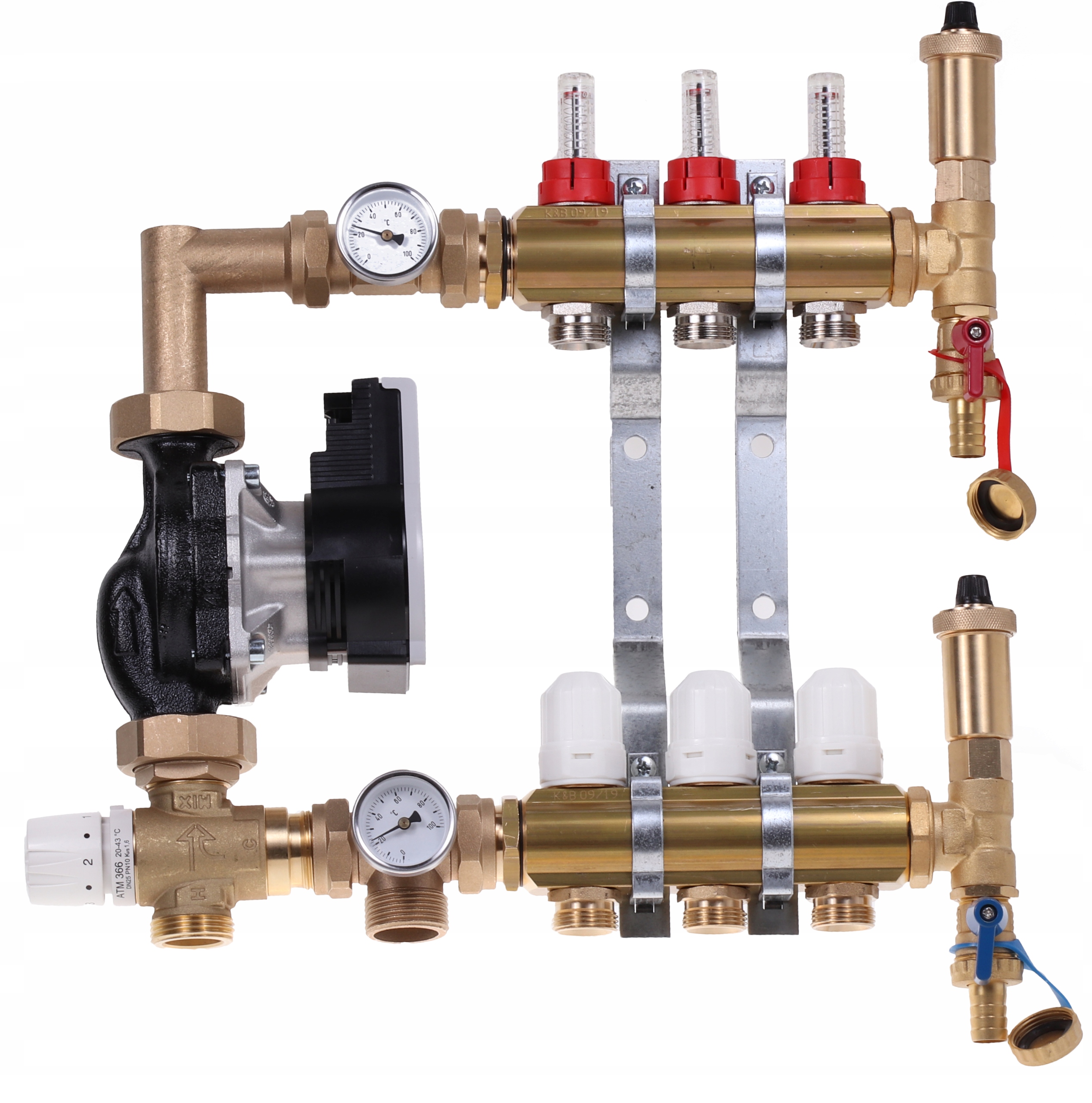2-контурный латунный коллектор для теплого пола + система смешивания: