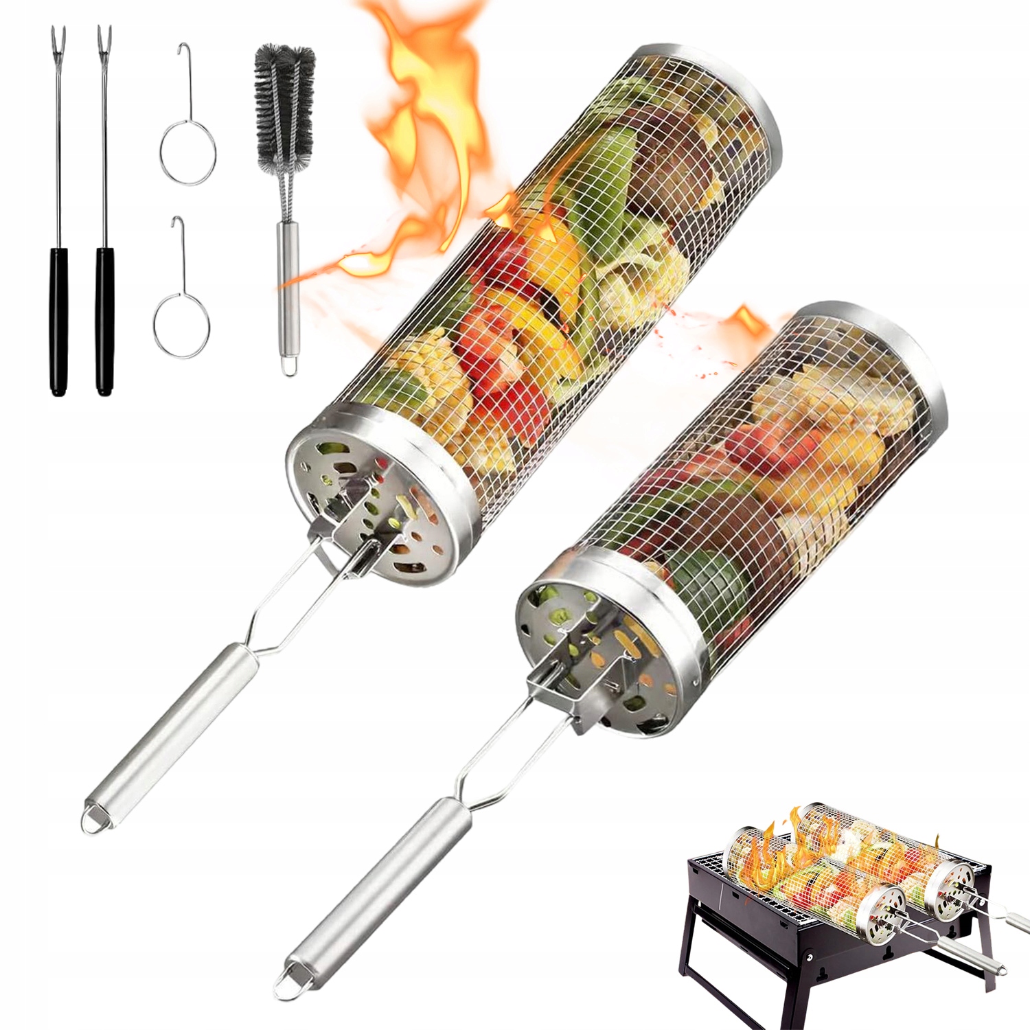 🍖Кроме того, наша инновационная цилиндрическая корзина для гриля легко поворачивается и оснащена съемной ручкой для точного управления и обеспечения идеальных результатов приготовления на гриле каждый раз.