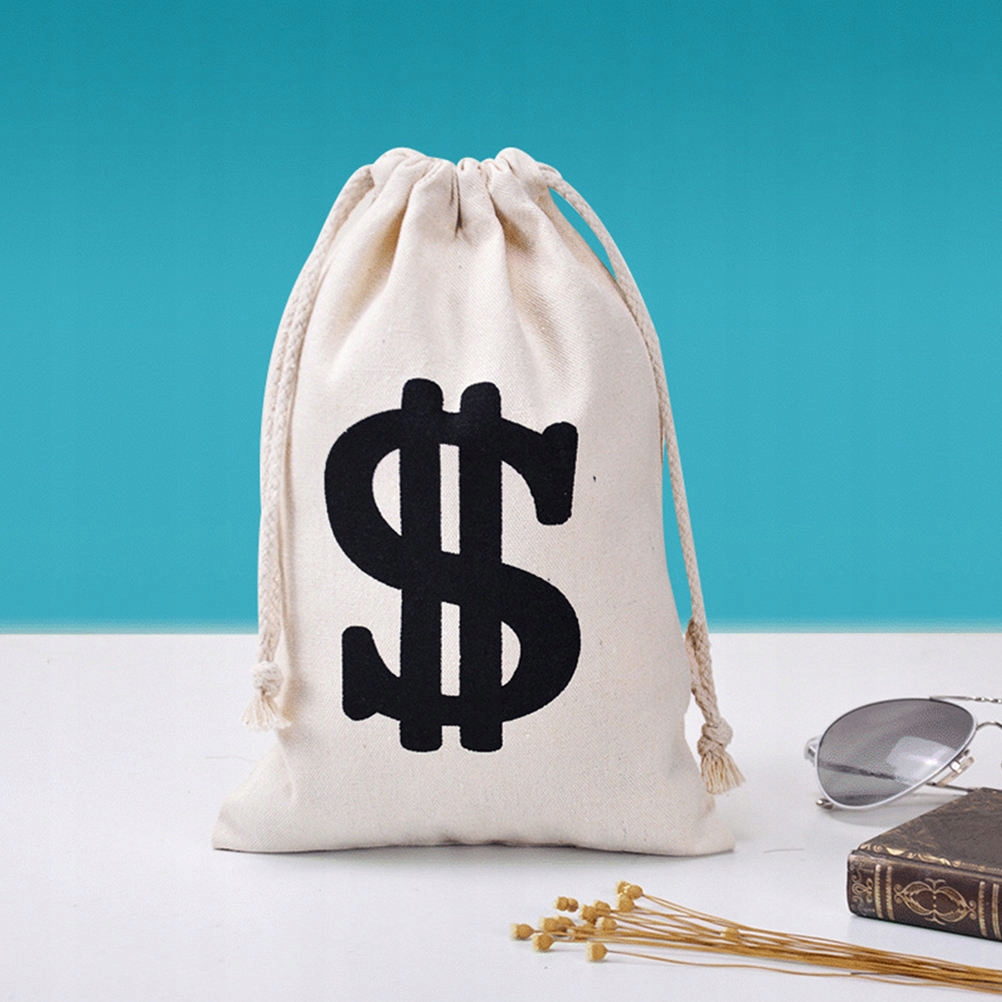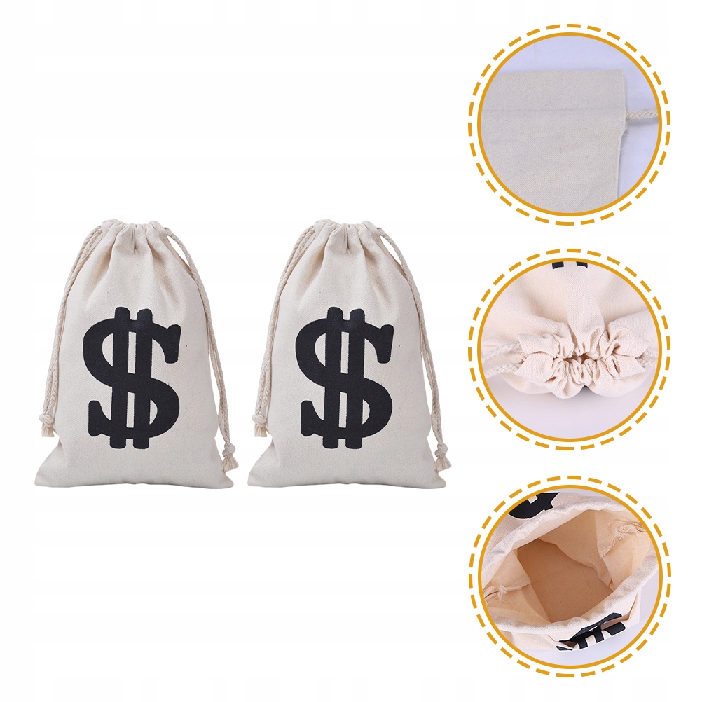 2 шт. ХЛОПКОВЫЕ СУМКИ С ВЕРНОЧКОЙ, ДОЛЛАРОВЫЙ УЗОР