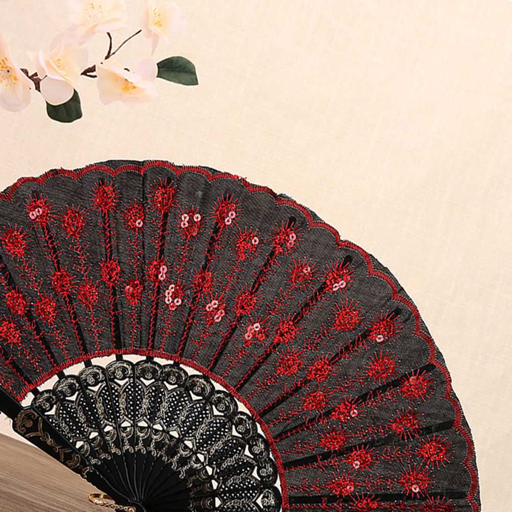 2 ШТ. КРАСНЫЙ ВЕЕР С ВЫШИВКОЙ ПАЙЕТОК, ДЕКОРАТИВНЫЙ И ПРОЧНЫЙ
