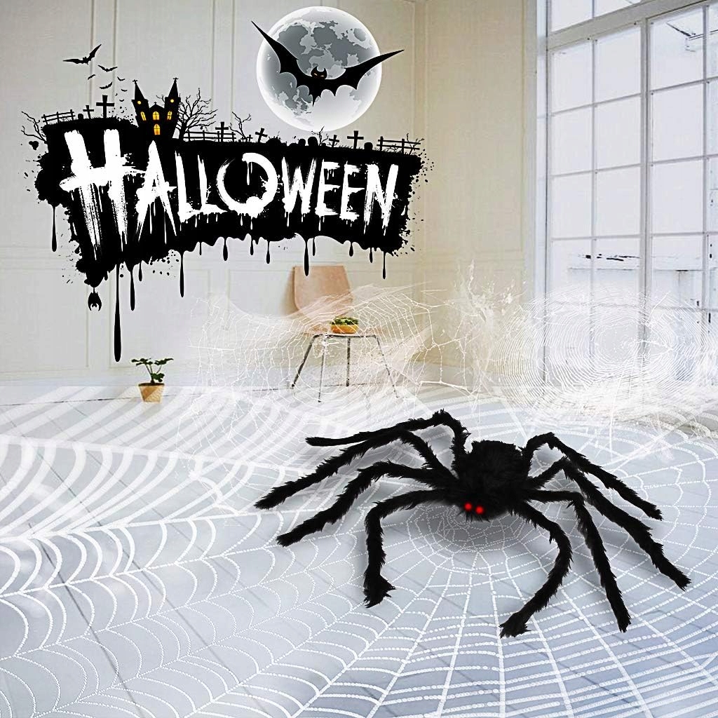 💀💀💀[Страшный гигантский паук] – эта паутина идеально подходит для украшения на открытом воздухе на Хэллоуин. Эта паутина невероятно велика (до 2 метров в развернутом виде), но при этом легкая, что делает ее идеальной для украшения на открытом воздухе.Хэллоуин Уличные украшения «Волосатый паук»,(2 шт. в упаковке). Покрытый пушистым черным мехом, с яркими ярко-красными глазами, он выглядит как устрашающий живой паук. Этот сад из паутины Хэллоуина полон духа праздника, а жуткий фон заставит вашу семью и друзей кричать от радости! (Этот продукт содержит только пауков. Чтобы просмотреть другие товары, связанные с Хэллоуином, выполните поиск по ключевому слову в нашем магазине.)