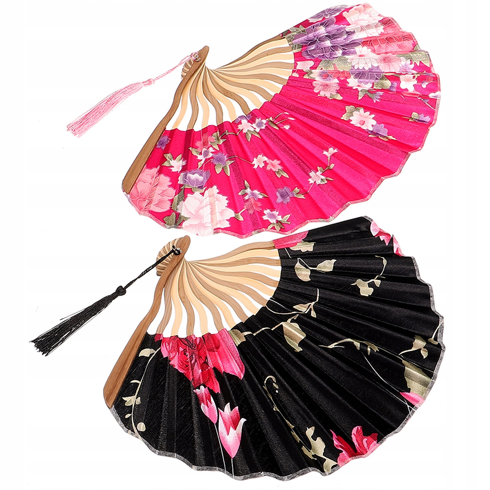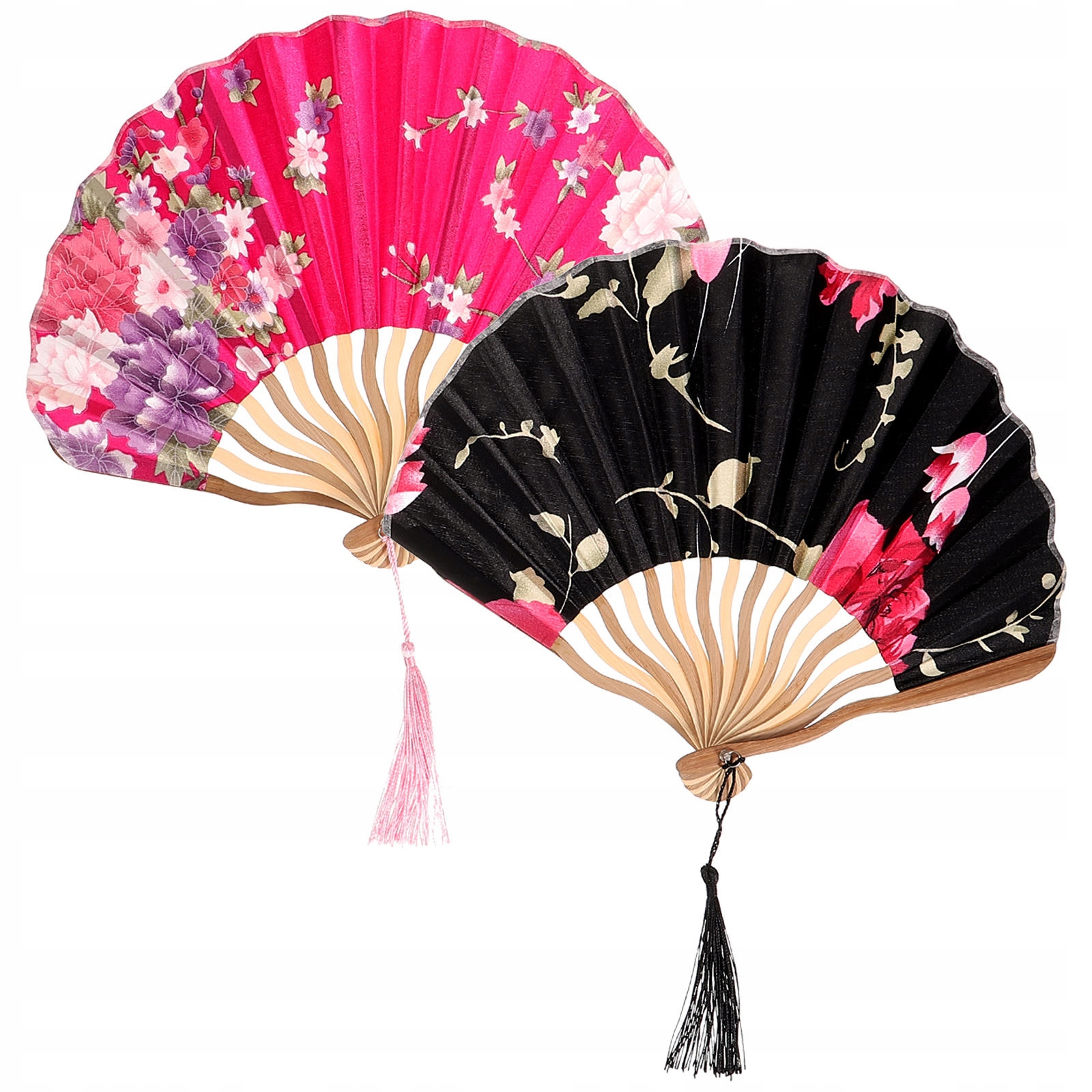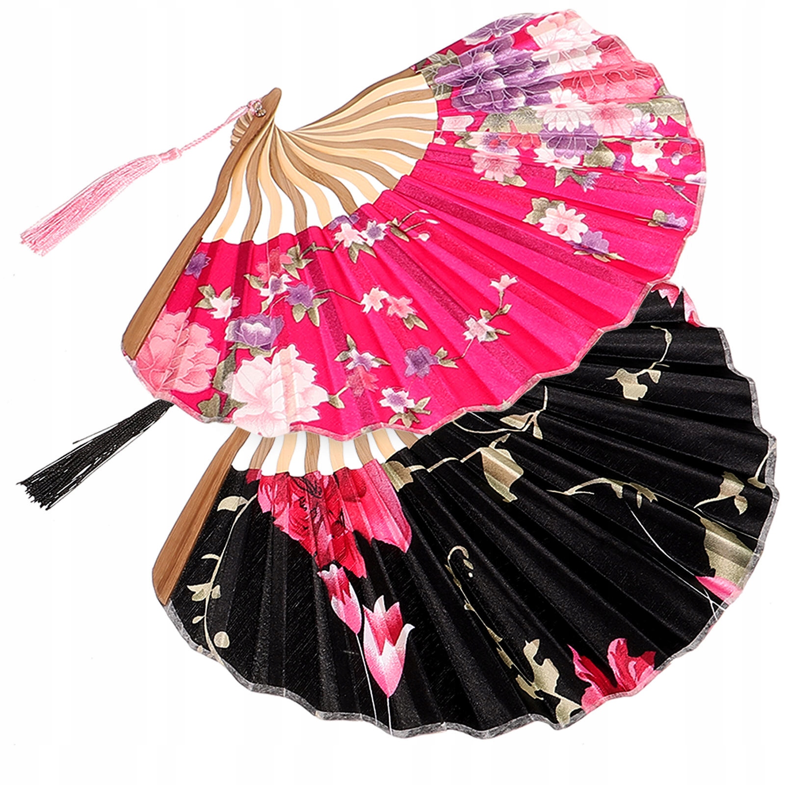 2 шт. складной бамбуковый веер с цветным декором и маленький