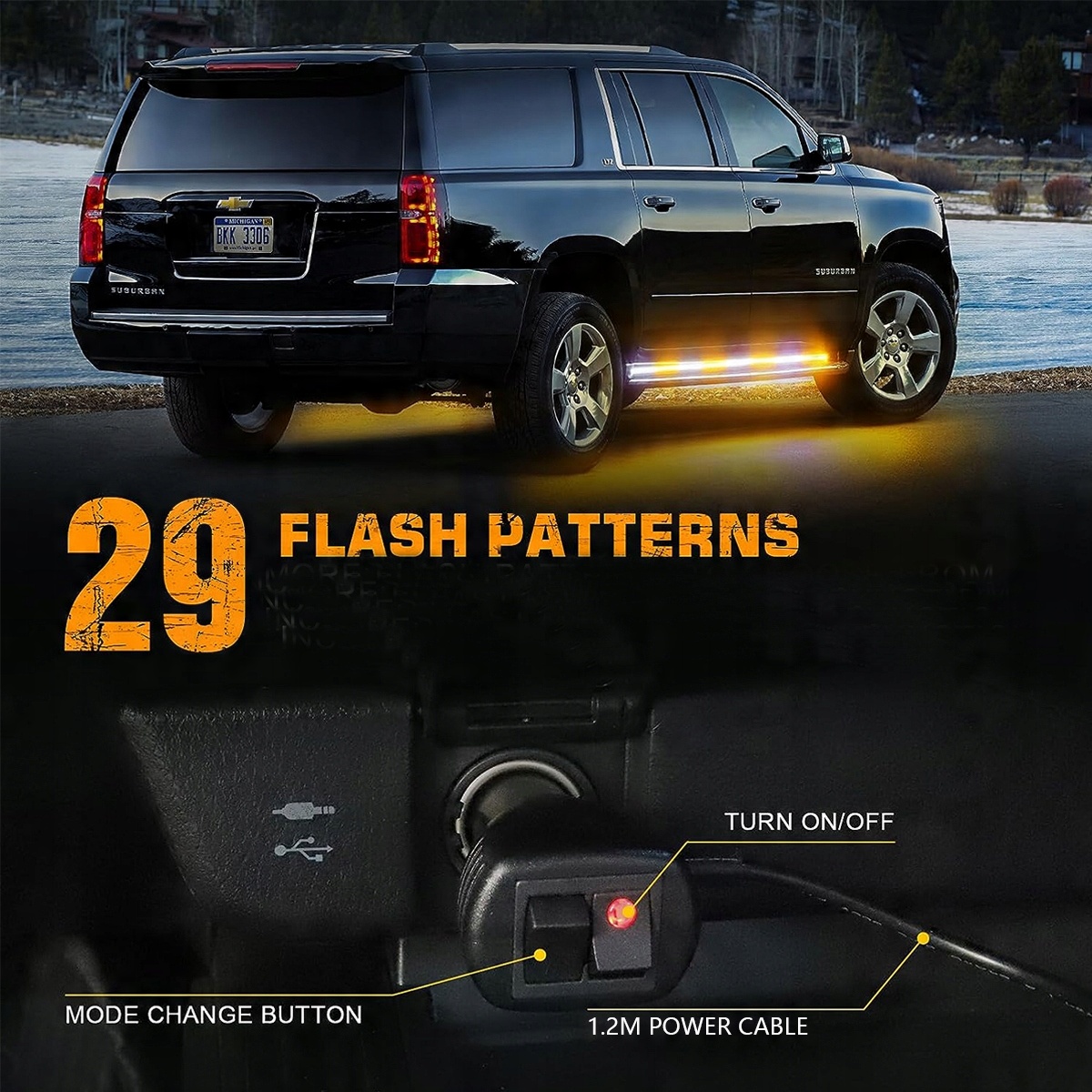 ✔️Эта стробоскопическая полоса длиной 70 дюймов (1,78 м) оснащена 432 яркими светодиодами (864 светодиода на 2 световые полосы). Даже днем янтарные и белые огни светятся ярко, привлекают внимание водителя и эффективно сигнализируют о любых предупреждениях и экстренных ситуациях.