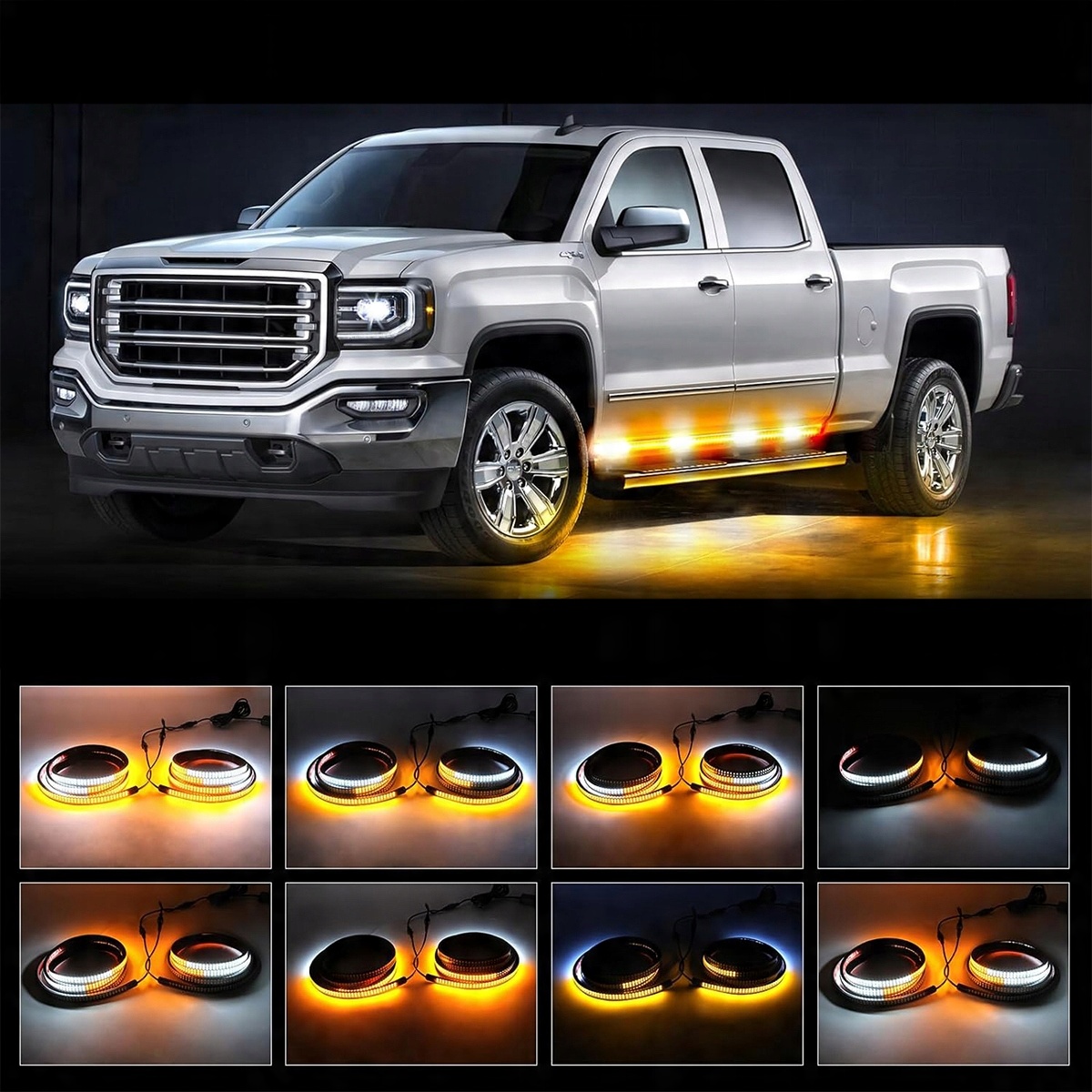 2 шт., 70-дюймовые стробоскопические полосы для грузовиков. 864 светодиодные аварийные фонари на приборной панели. Янтарный + белый мигающий сигнальный свет. Световые сигналы безопасности. IP67. Водонепроницаемый. Гибкий для грузовых автомобилей. Строительная техника. Прием 12 В/24 В.