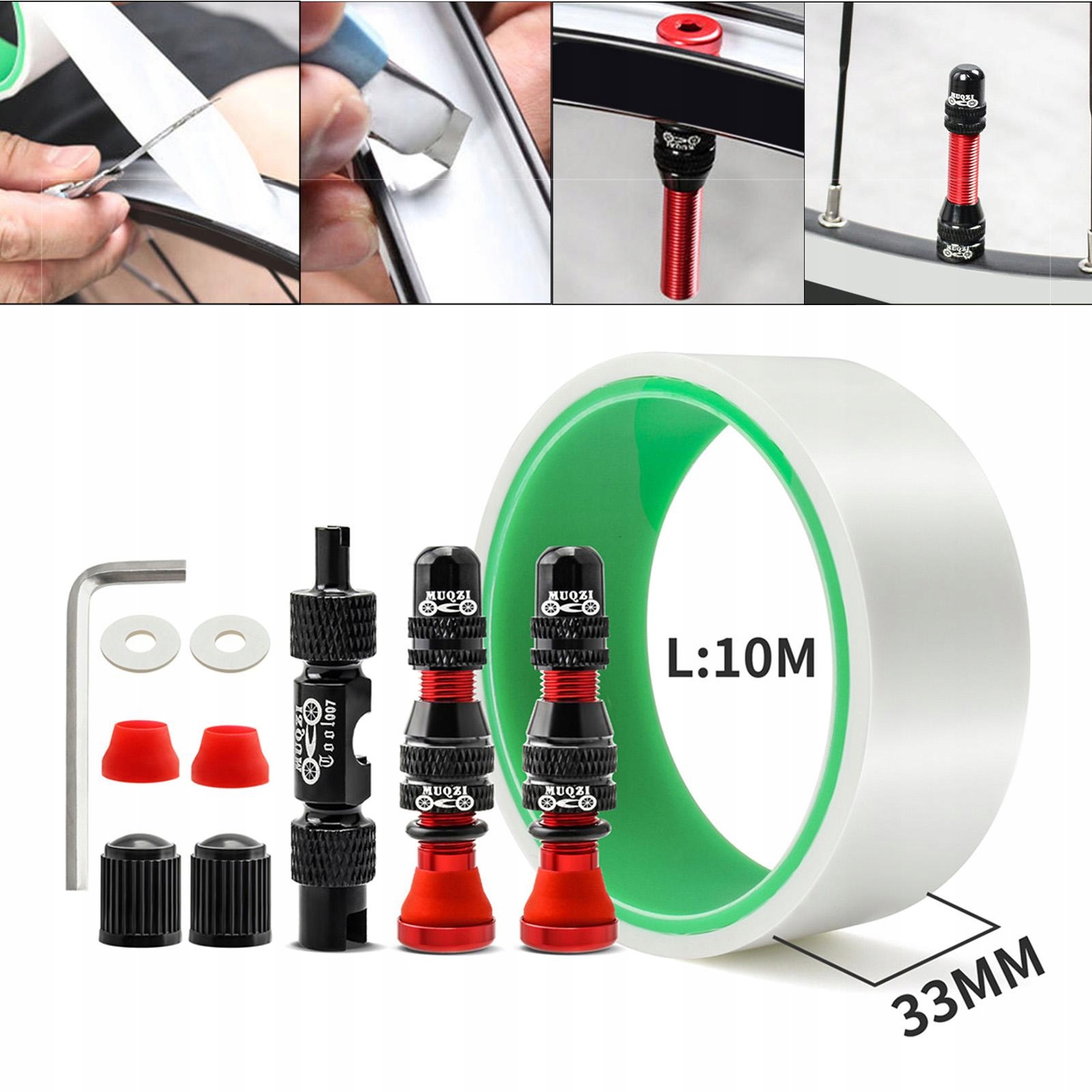 Стержень клапана бескамерной шины из алюминиевого сплава с колпачками клапанов, вакуумная шайба для обода, лента 33 мм, красная