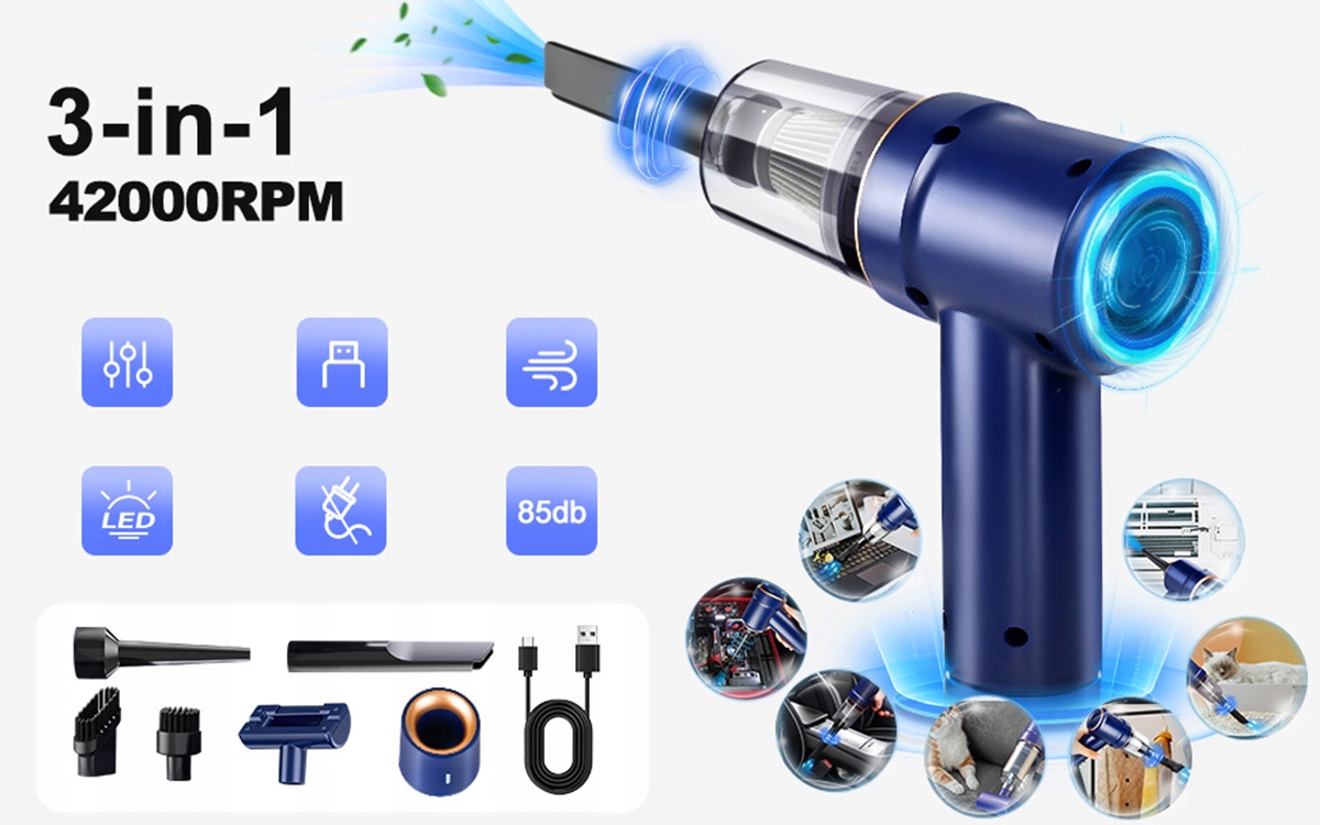 - 🧹 Подходит для автомобиля, дома, шерсти домашних животных, компьютера, клавиатуры и промышленной пыли. .