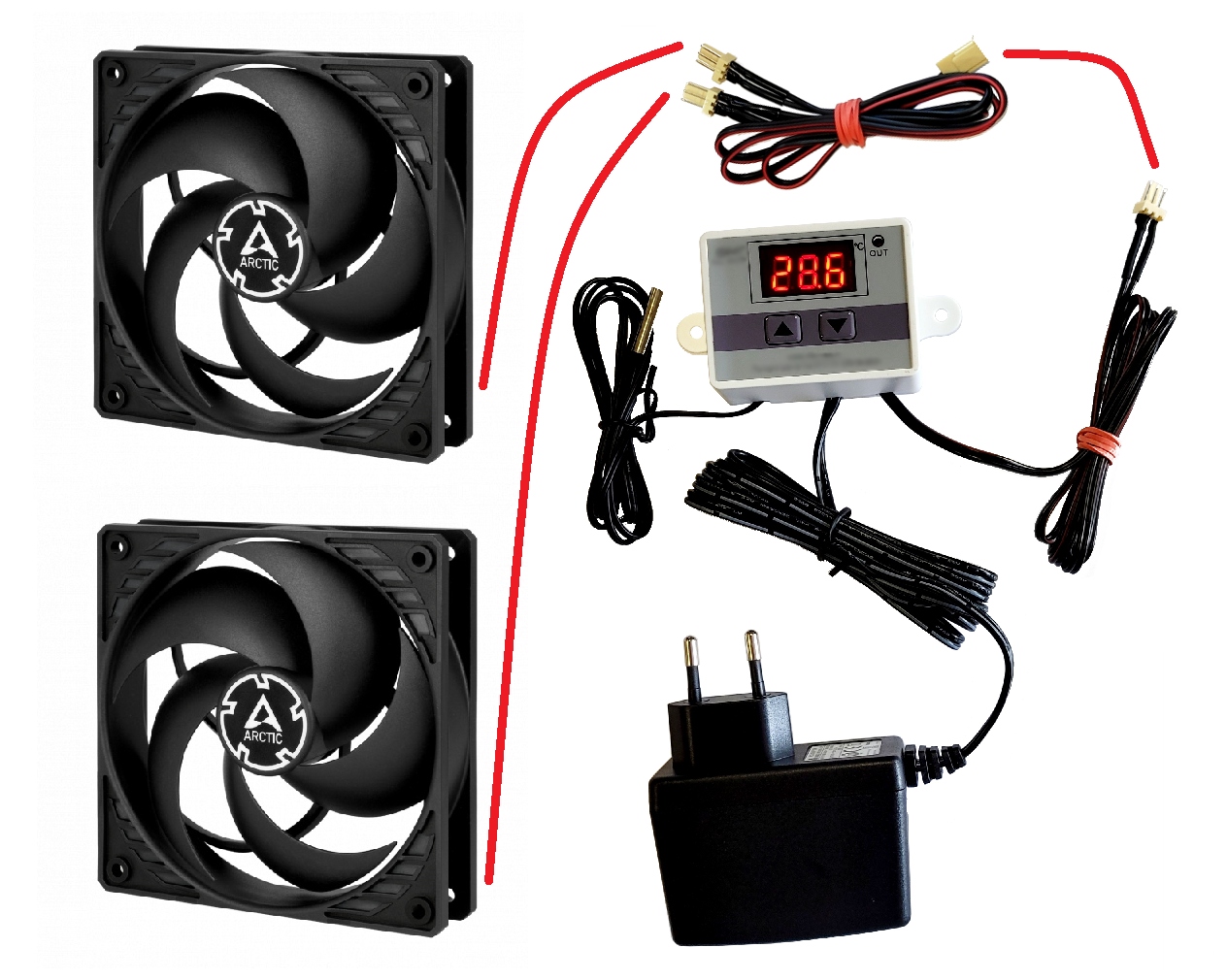 В предложении также имеются распределители, позволяющие подключить к данному комплекту дополнительные вентиляторы ( максимум 8 штук).