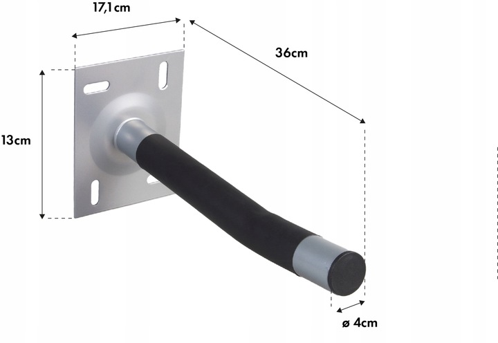 - Размеры: 36 см (длина), 17,1 см. (ширина монтажной пластины), 13 см (высота монтажной пластины), 4 см (диаметр трубки)