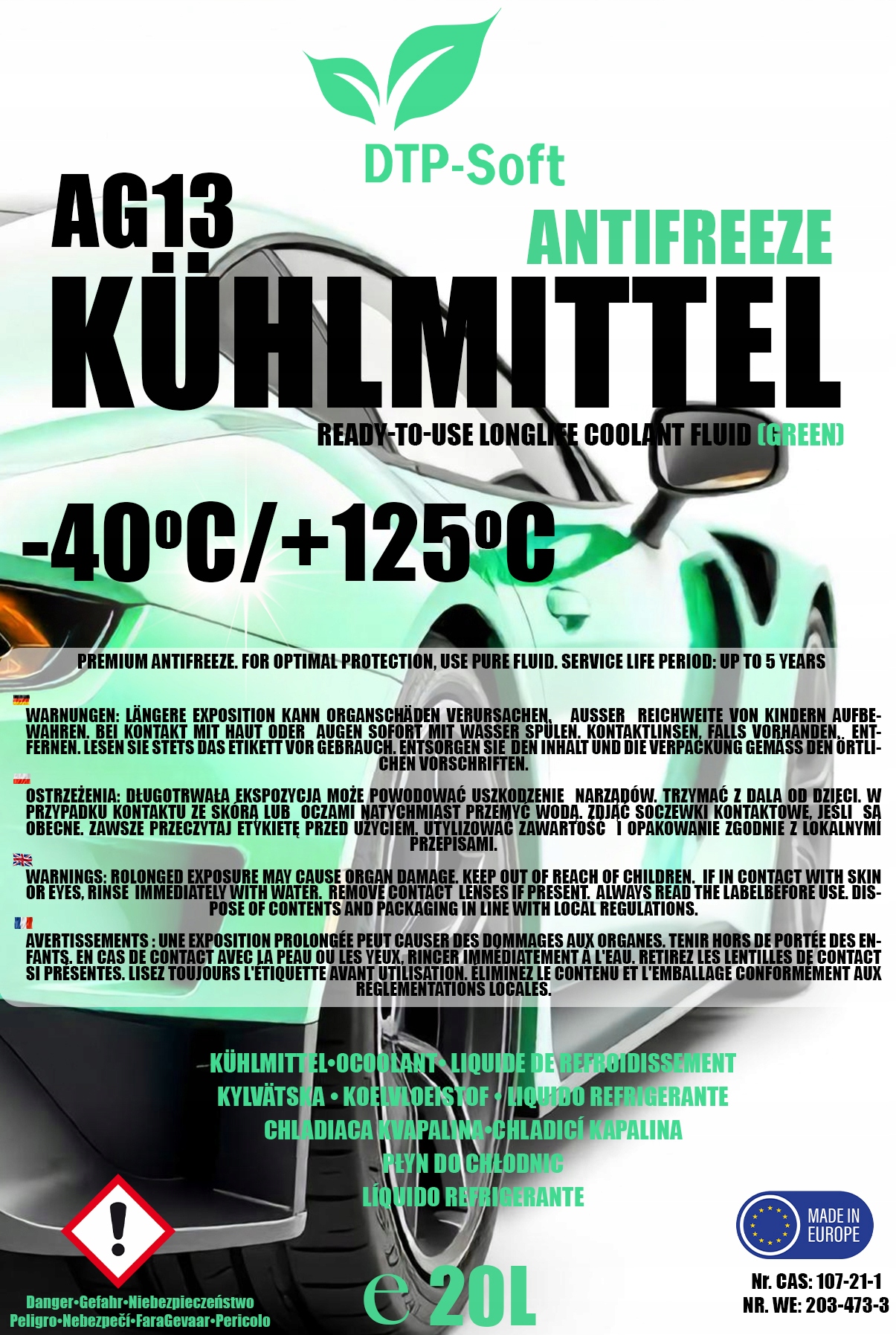 20 л охлаждающей жидкости AG13 -40°C | ЗЕЛЕНЫЙ | ВЫСОКОКАЧЕСТВЕННЫЙ КОНЦЕНТРАТ ДЛЯ СИСТЕМ ОХЛАЖДЕНИЯ - 1 x 20л TOP�