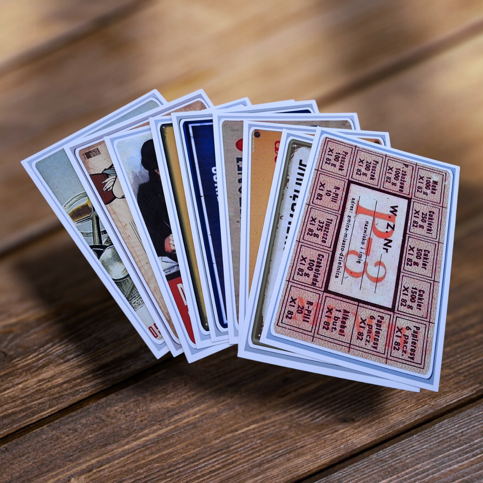Фотопластины напечатаны на глянцевой фотобумаге плотностью 235 г/см. Принт устойчив к царапинам.