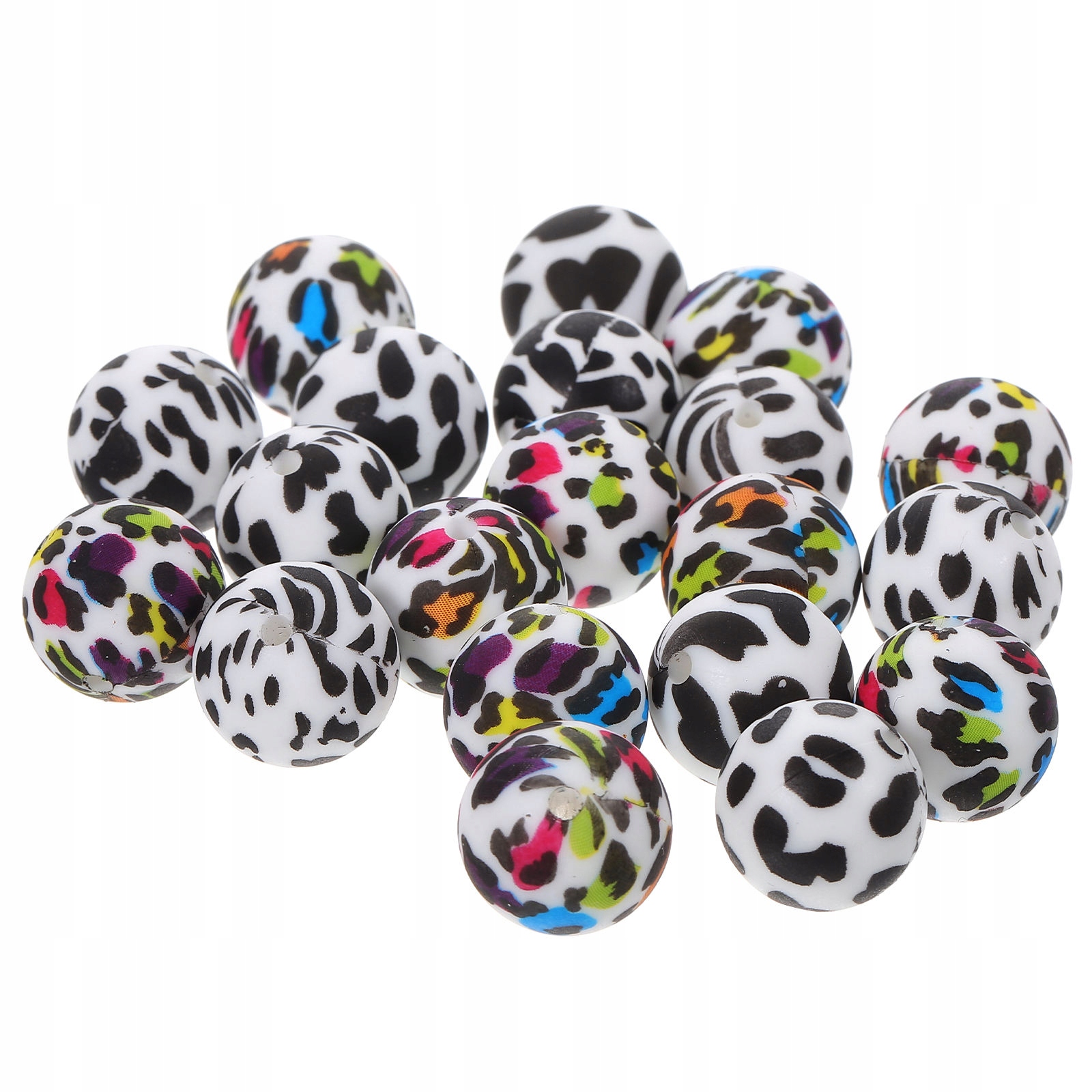 20 ШТУК СИЛИКОНОВЫХ БУСИН С УЗОРАМИ КОРОВЫ И ЛЕОПАРДА