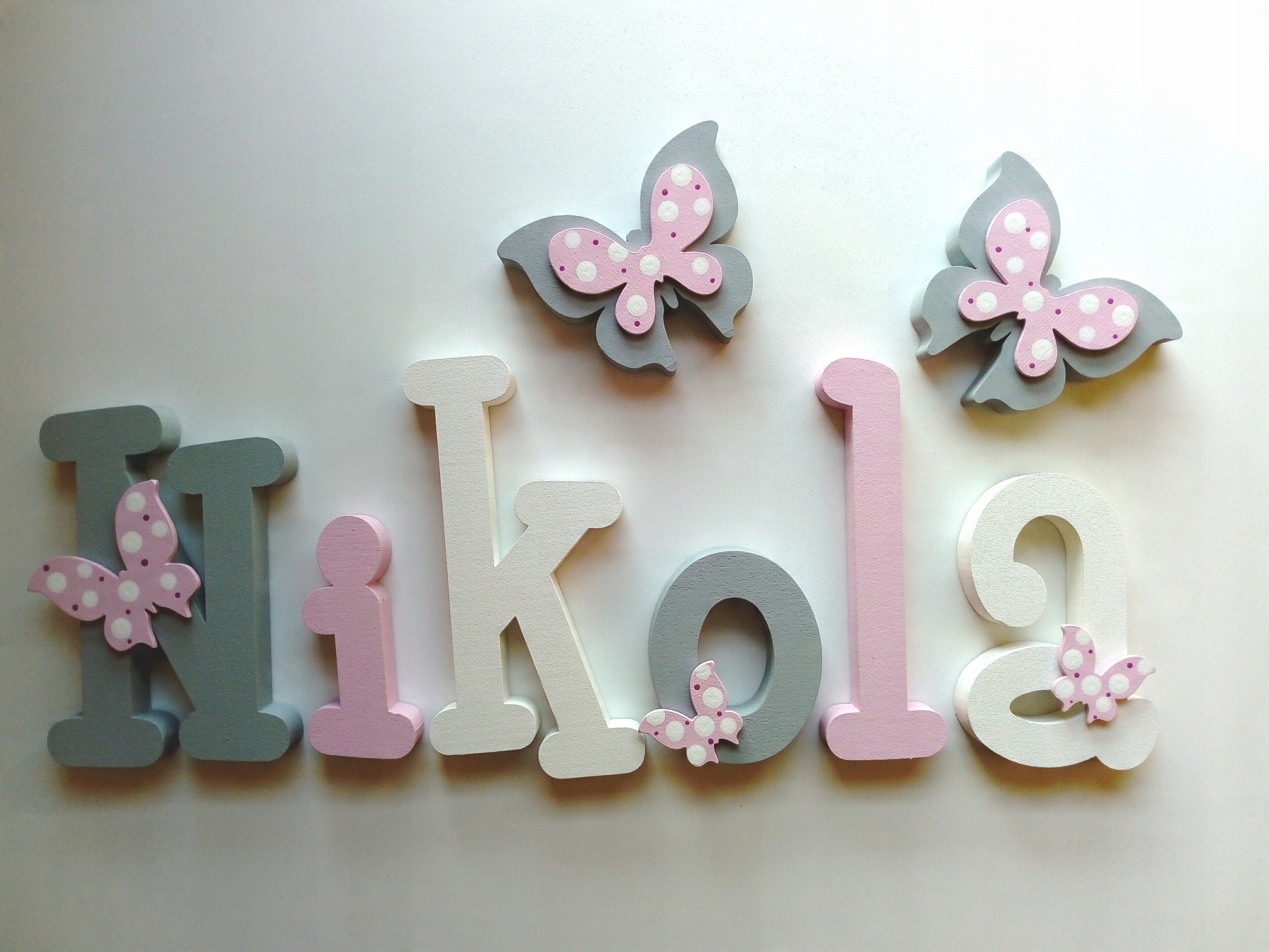 В продаже имеются красивые, расписанные вручную и украшенные ажурными фанерными украшениями-буквы, из которых можно составить имя вашего ребенка.