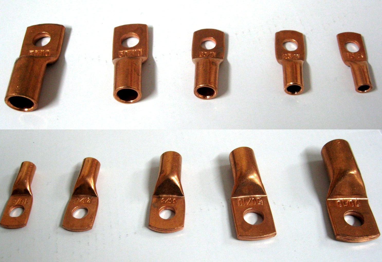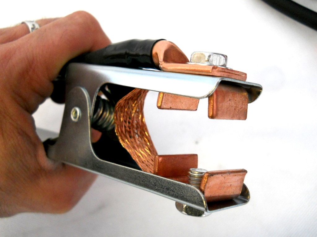 Особого внимания в наших кабелях заслуживает прочное соединение кабеля с заземляющим держателем (см. фото). На конце кабеля при подключении к ручке зажимаем толстые, прочные медные клеммы с помощью гидравлического пресса, что при минимальных затратах (около 5-6 злотых) защищает весь кабель от перепадов напряжения в этом ответственном месте и гарантирует его эффективную работу.