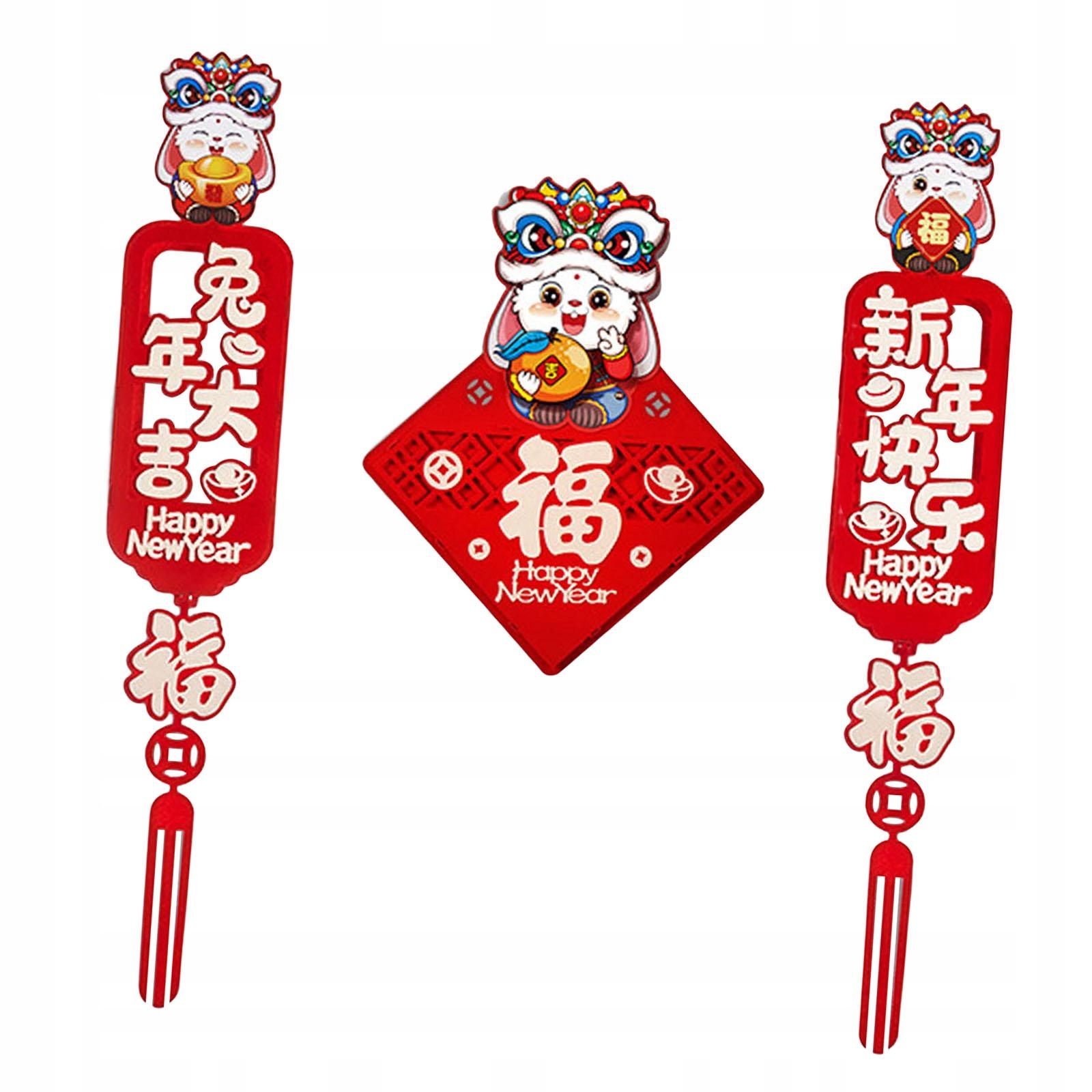 Дизайн: этот подвесной куплет в форме праздничного кролика и фигурки благословения также украшен милым новогодним изображением. Идеально подходит для придания праздничности году кролика.