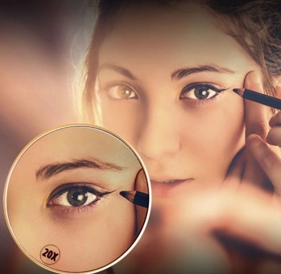 - это косметическое зеркало из пластика, долговечного и практичного. Он маленький и легко носить, подходит для путешествий и шоппинга на открытом воздухе. 5-кратное расширение стекло, показывающее детали лица, является хорошим помощником при бритье. 89x1 .18 Cala