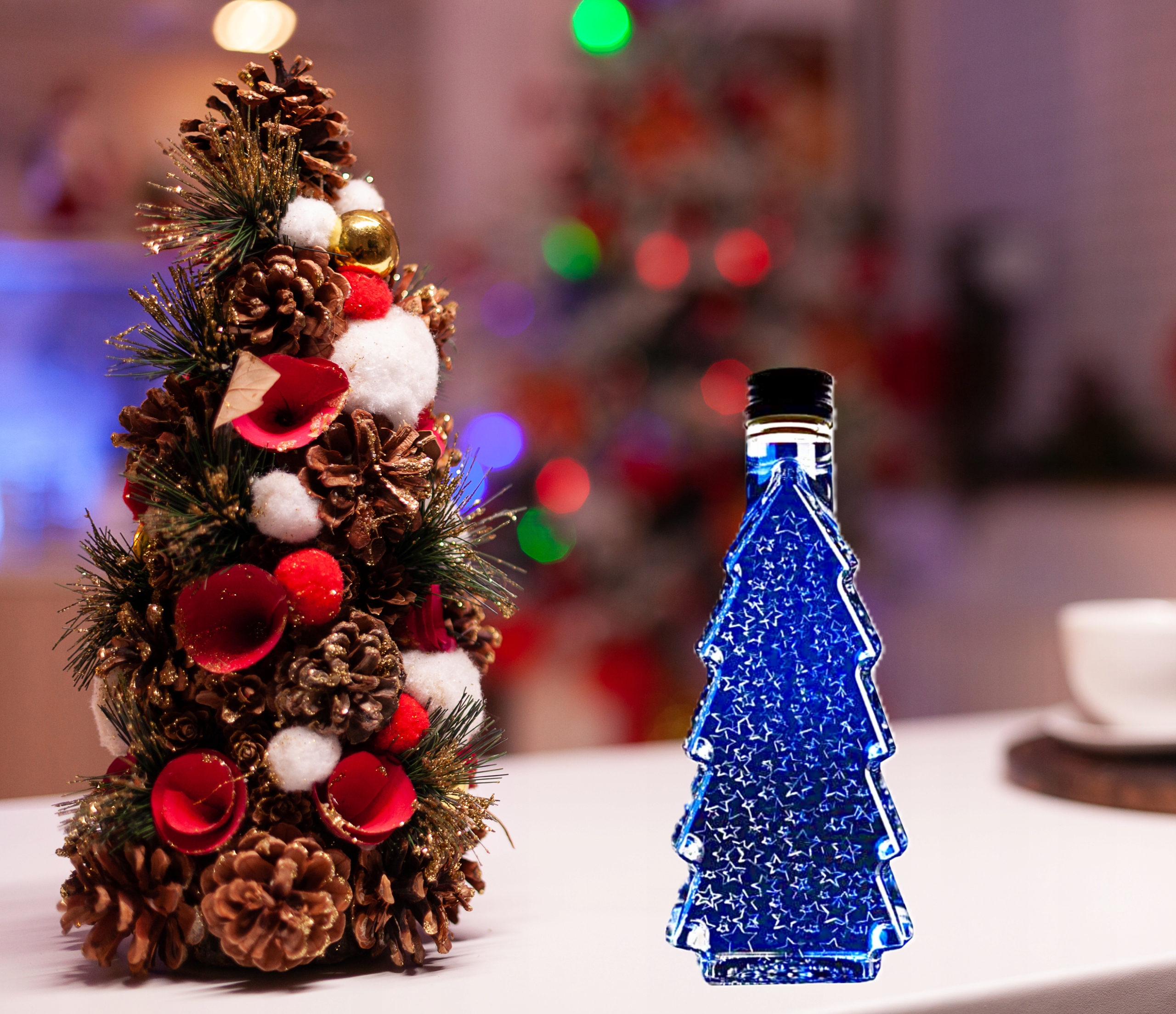 Рождественская бутылка < б> РОЖДЕСТВЕНСКАЯ ЕЛКА С РЕЗЕЛЬНЫМИ ЗВЕЗДАМИ емкостью 250 мл. Стеклянная бутылочка в форме елочки емкостью 250 мл – уникальный аксессуар, сочетающий в себе элегантность и практичность. Эта очаровательная бутылка не только впечатляет своим дизайном, но и служит практичным сосудом для питья. Изготовленный из прочного прозрачного стекла, он позволяет сохранить первоначальный вкус и аромат хранящихся в нем жидкостей. Благодаря емкости 250 мл она идеально подходит для хранения любимого алкоголя или даже домашних сиропов.