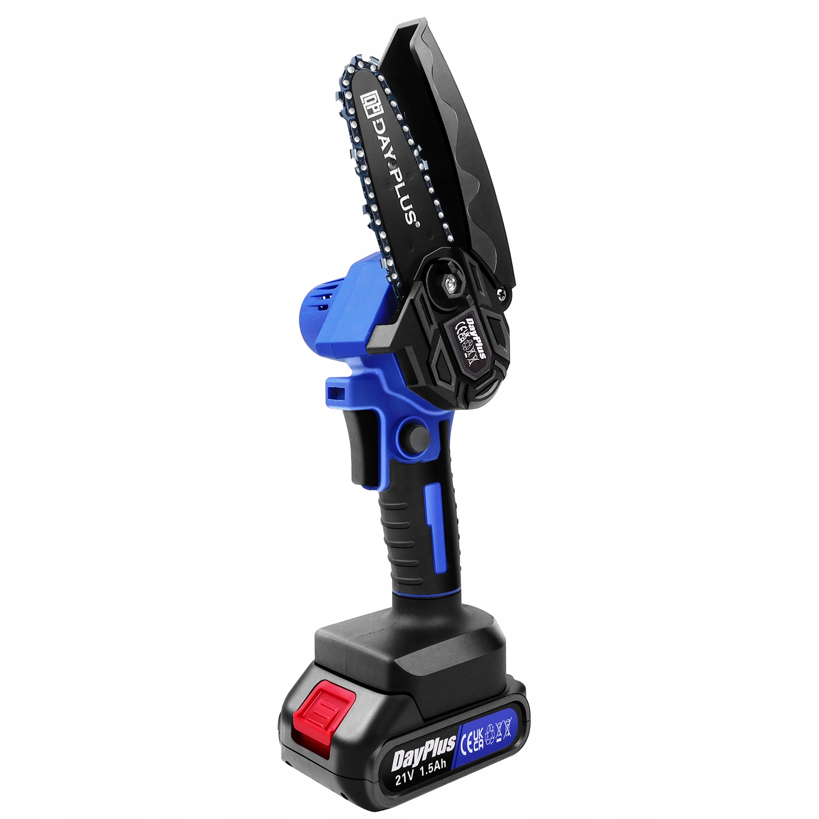 【Емкость аккумулятора для источника зарядки】 Ручная бензопила поставляется с литиевой батареей напряжением 21 В, 1,5 Ач, которую можно использовать в течение 30-40 минут при зарядке и обеспечивает производительность без потери памяти.