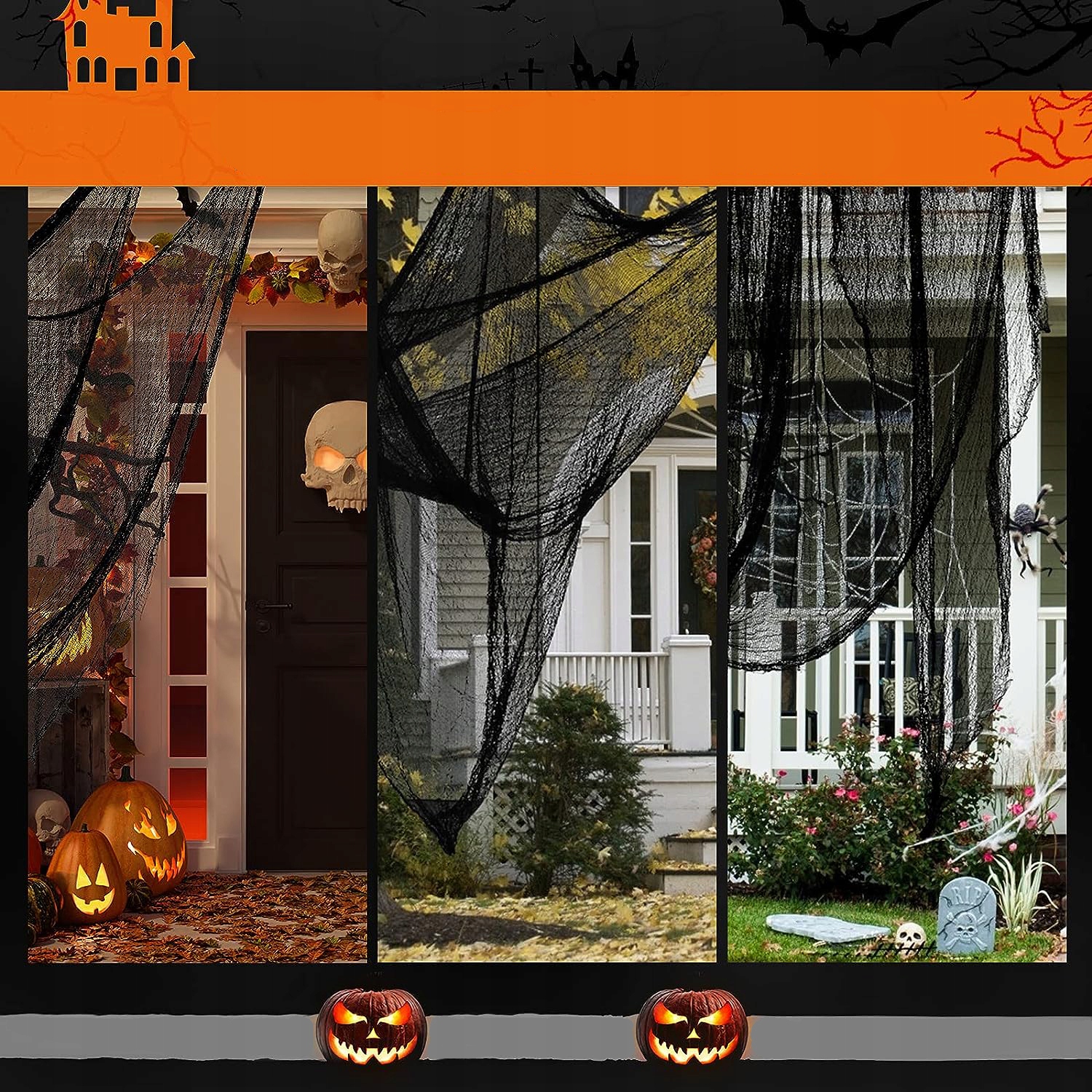 👻 Большой размер: Страшная черная ткань для Хэллоуина имеет длину 5 метров и ширину 2,15 метра. Идеально подходит в качестве устрашающего украшения для вечеринок в честь Хэллоуина.