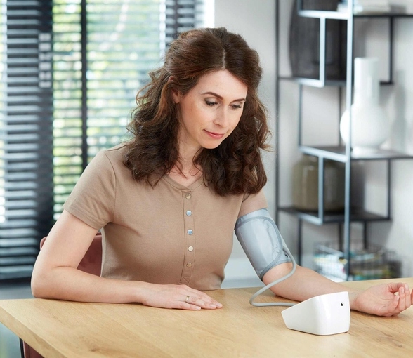 Индикатор расположения манжеты помогает правильно наложить манжету для точных измерений. Сохраняет до 30 показаний для просмотра. Это упрощает обмен важной информацией с семьей, лицами, осуществляющими уход, или медицинскими работниками.