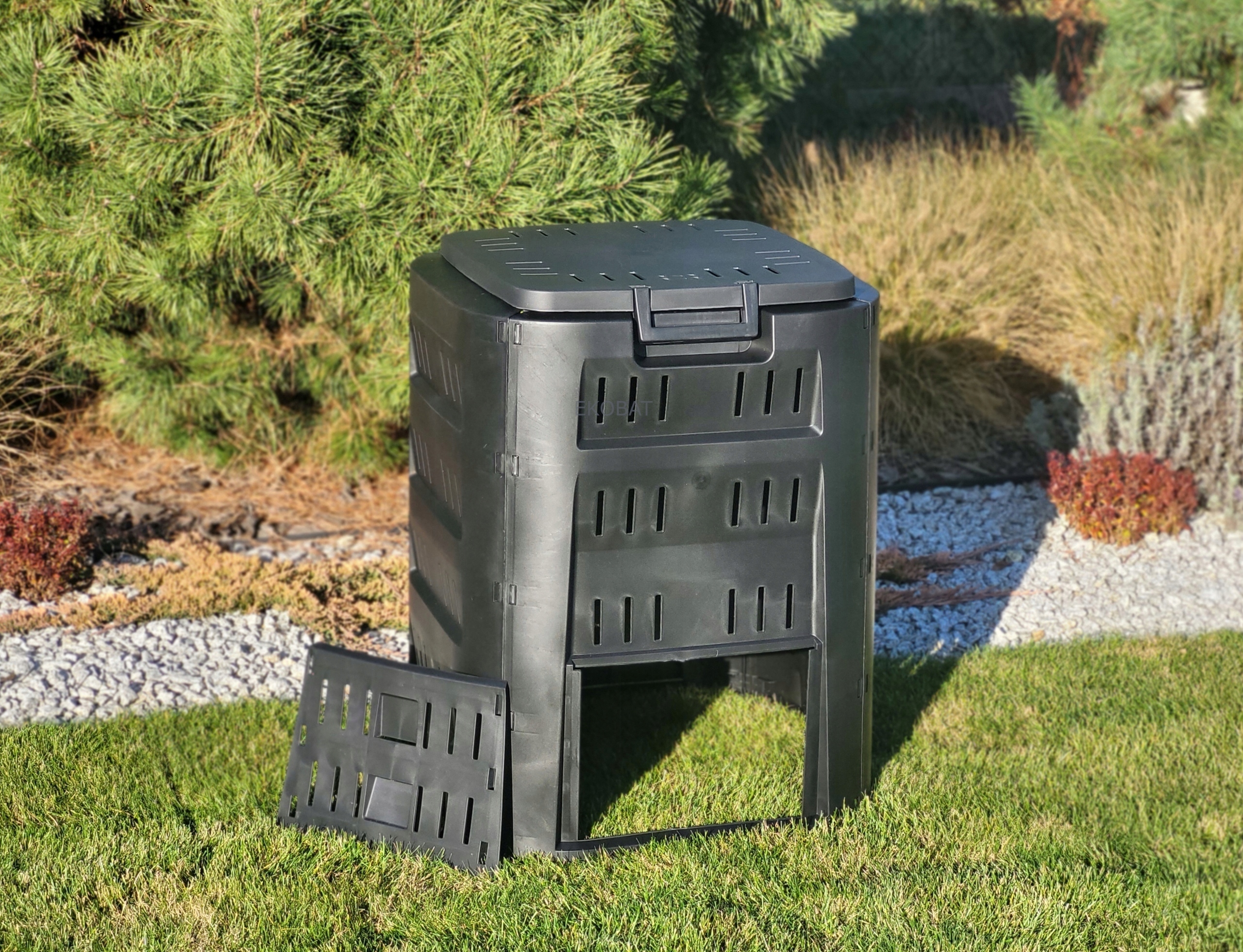 Проверенный компостер компостера с емкостью 220L предназначен для компостирования различных типов биоразлагаемых отходов и получения естественных удобрений. Закрытая форма ограничивает доступ к животным к сохраненным отходам, в то время как небольшие отверстия обеспечивают подачу воздуха. Благодаря наклонным воротам, мы можем легко добраться до готового компоста в нижней части резервуара. Материал, из которого производится компогрин, делает его легким и чрезвычайно прочным