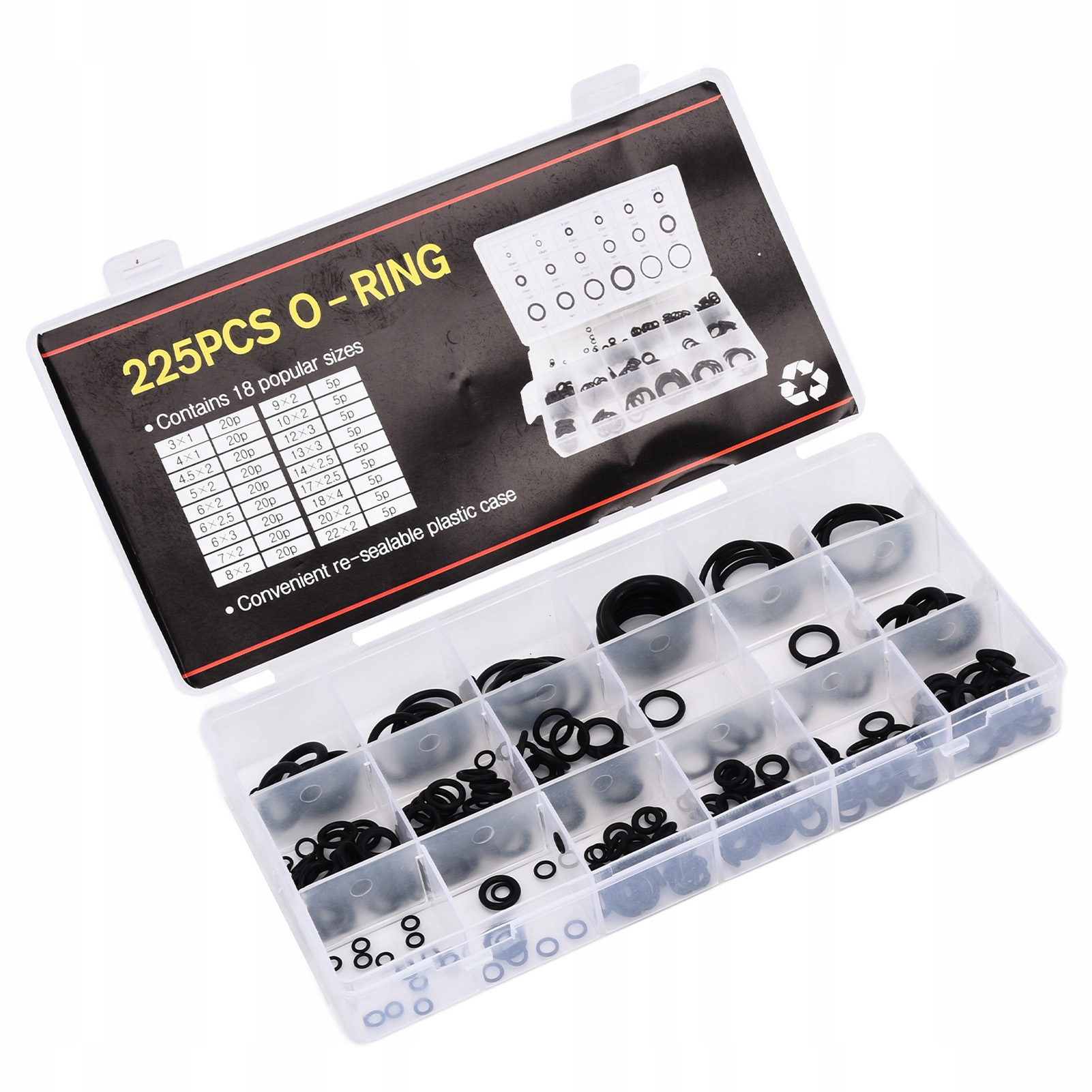 НАБОР РЕЗИНОВЫХ ШАЙБ, 225 ШТ., УПЛОТНЕНИЕ О-ФОРМЫ С VQ
